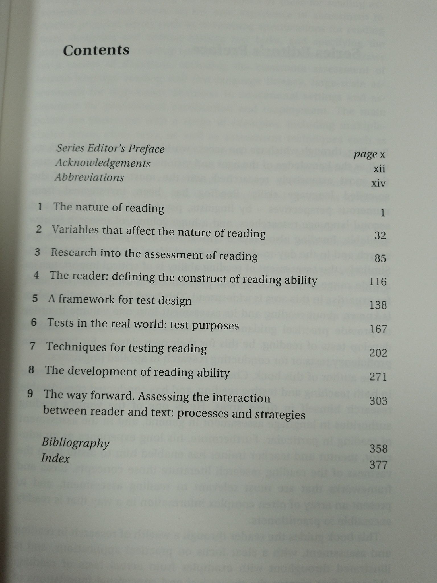 Written by a leading expert in both language testing and the nature of reading in a second or foreign language, this book provides a comprehensive treatment of the assessment of reading in a foreign or second language. The book reviews theory, research, and practice in the assessment of reading. It provides the novice with a comprehensive overview of the basic principles of reading assessment, and the researcher with an in-depth discussion of the major issues in the field.