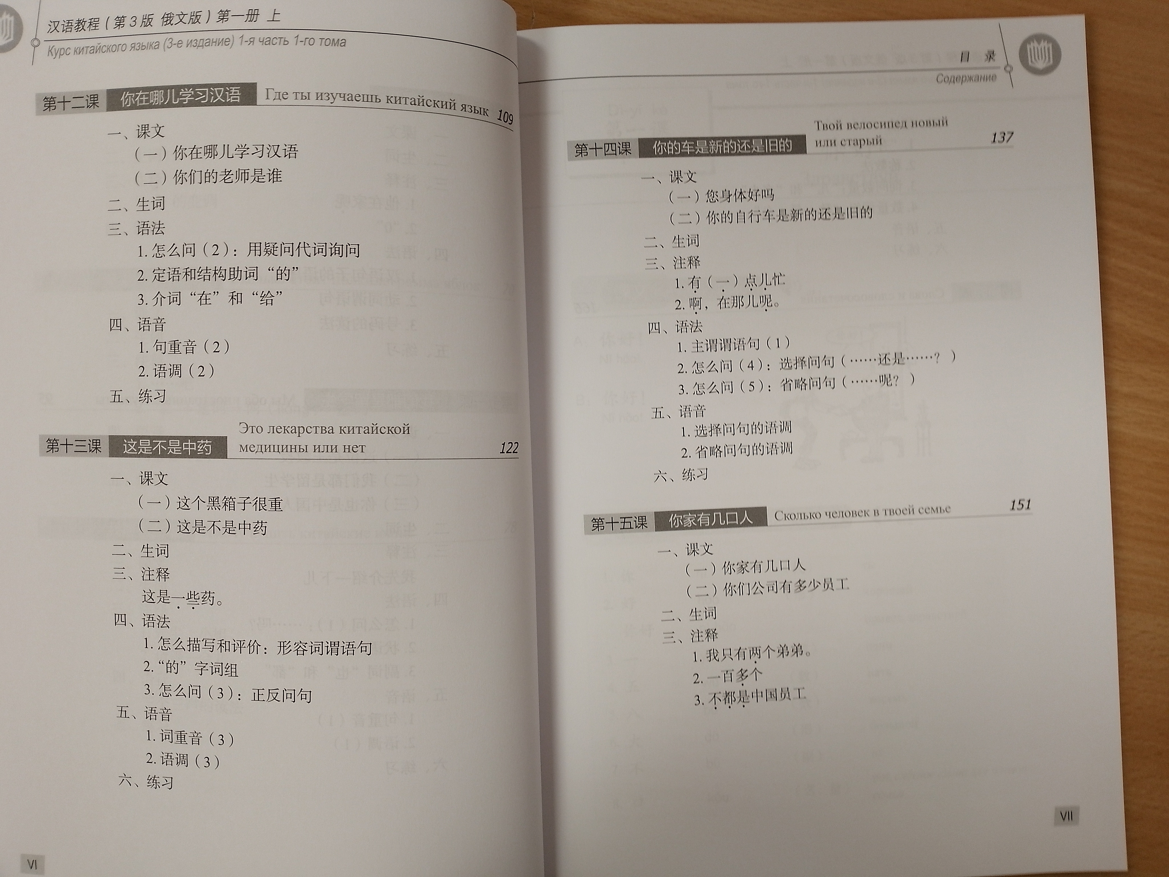 "Курс китайского языка" третьего издания разделен на три уровня (и соответствующие А и Б подуровни), состоит из 76 уроков.