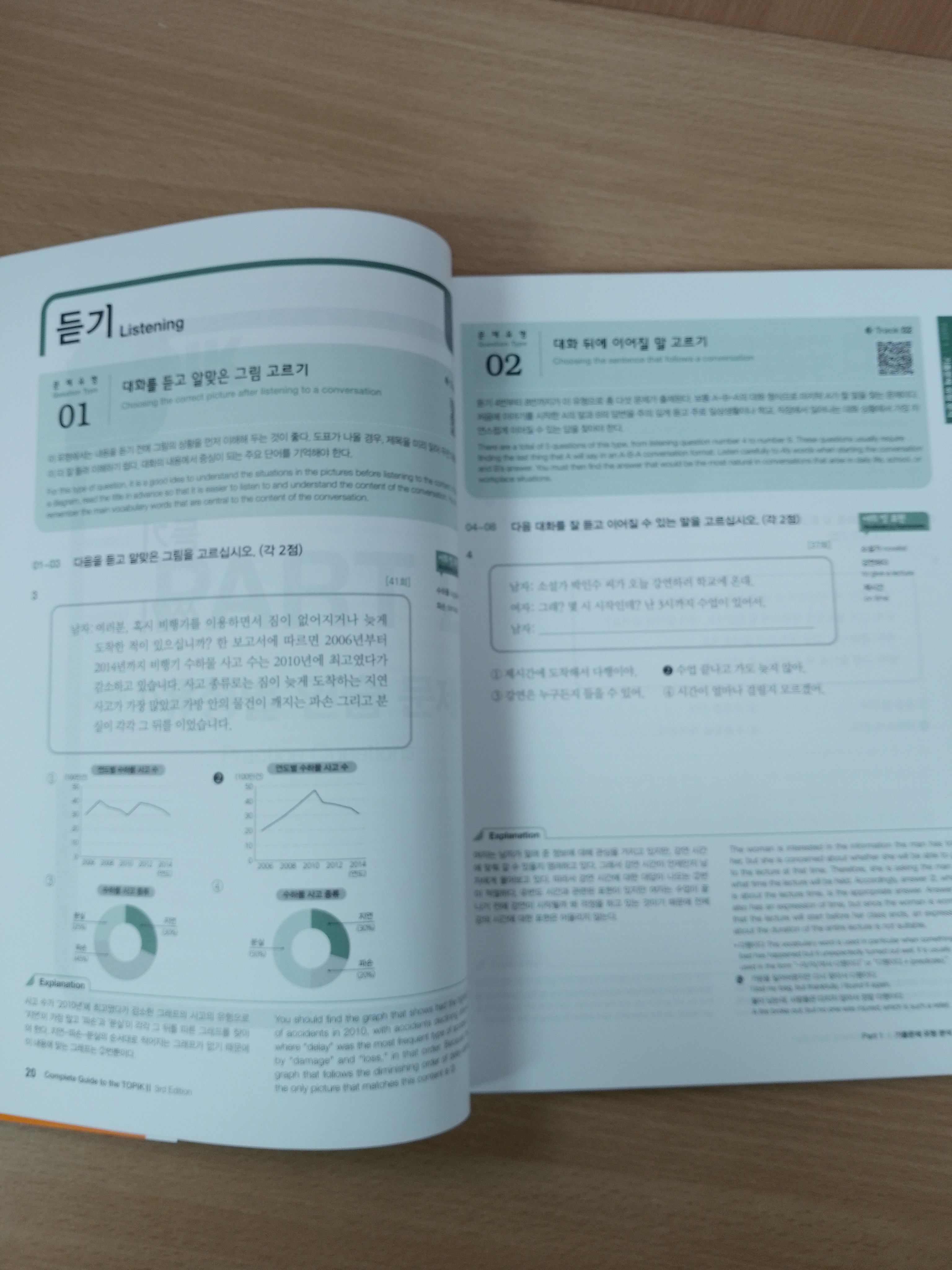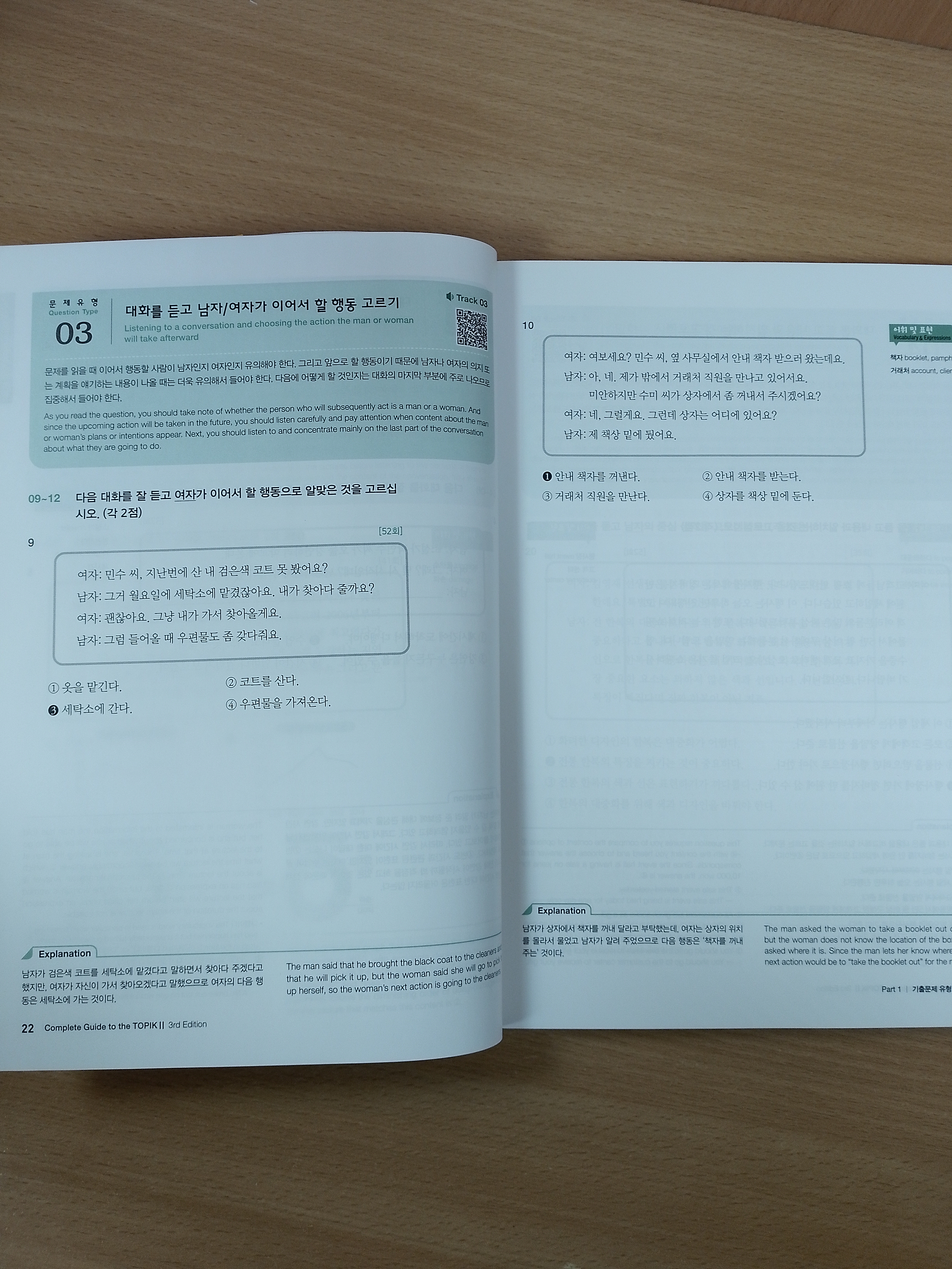 With the “TOPIK Writing Guide” included in the appendix, learners can achieve a high sore on the writing section, with how to write on squared manuscript paper, how to understand commonly confused vocabulary words and spelling, and how to correctly use particles, etc. all clearly explained with an English translation.