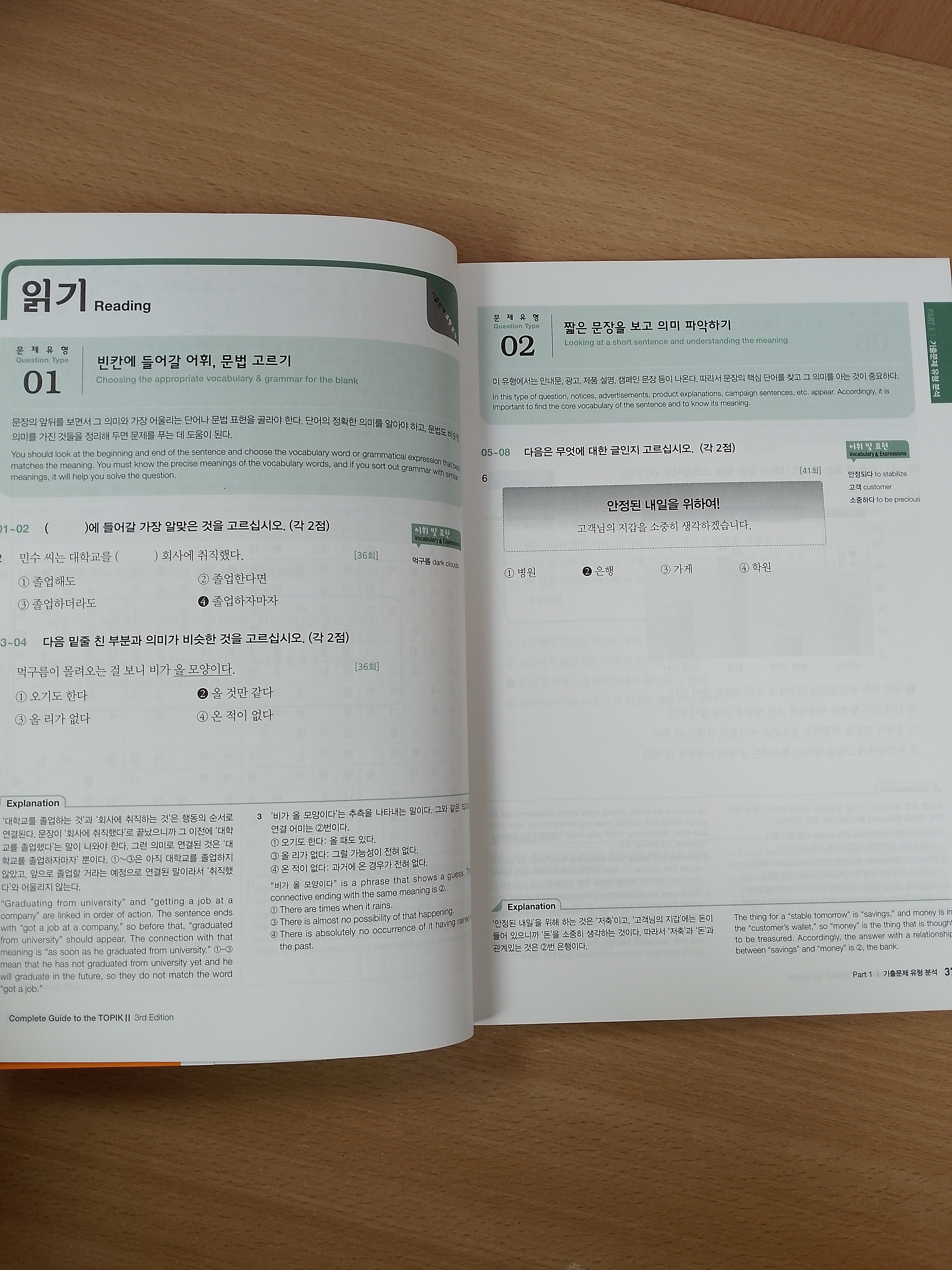 Learners can solve practice questions based on the problem-solving strategies identified in the sample questions, with each question accompanied by a supplementary explanation to provide a detailed understanding of all question types. With a total of 2 mock tests included, all questions and explanations are provided in both Korean and English, enhancing learners’ understanding.