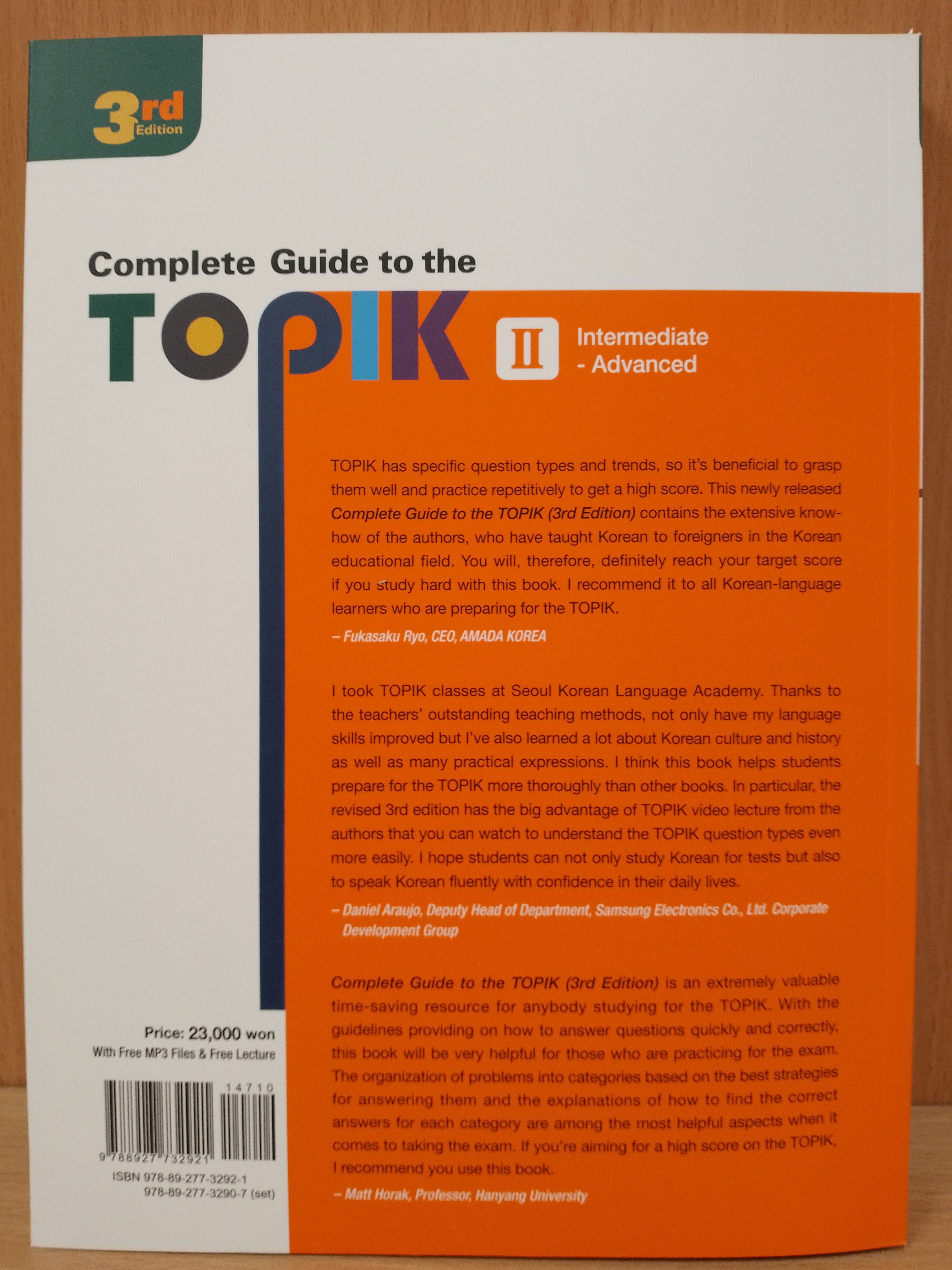The revised 3rd edition of the Complete Guide to the TOPIK reflects the newly improved TOPIK test evaluation framework and questions, and contains even more detailed explanations and analysis of sample question types and practice questions, as well as two mock tests. Consisting of TOPIK I (Basic) and II (Intermediate - Advanced), it’s the perfect preparation for the TOPIK, and through 11 special lectures (5 beginner level and 6 intermediate and advanced) by the author on key points, you can understand core TOPIK strategy to thoroughly prepare for the exam. The Complete Guide to the TOPIK series provides English translations of all question content and detailed explanations, so that learns can get a sense of the actual test based on a high degree of understanding of the TOPIK. TOPIK II (Intermediate - Advanced) helps learners to achieve a high score on the writing section by providing a “Writing Guide” in the appendix, including spelling and English analysis of explanations and examples of frequently mistaken expressions.
