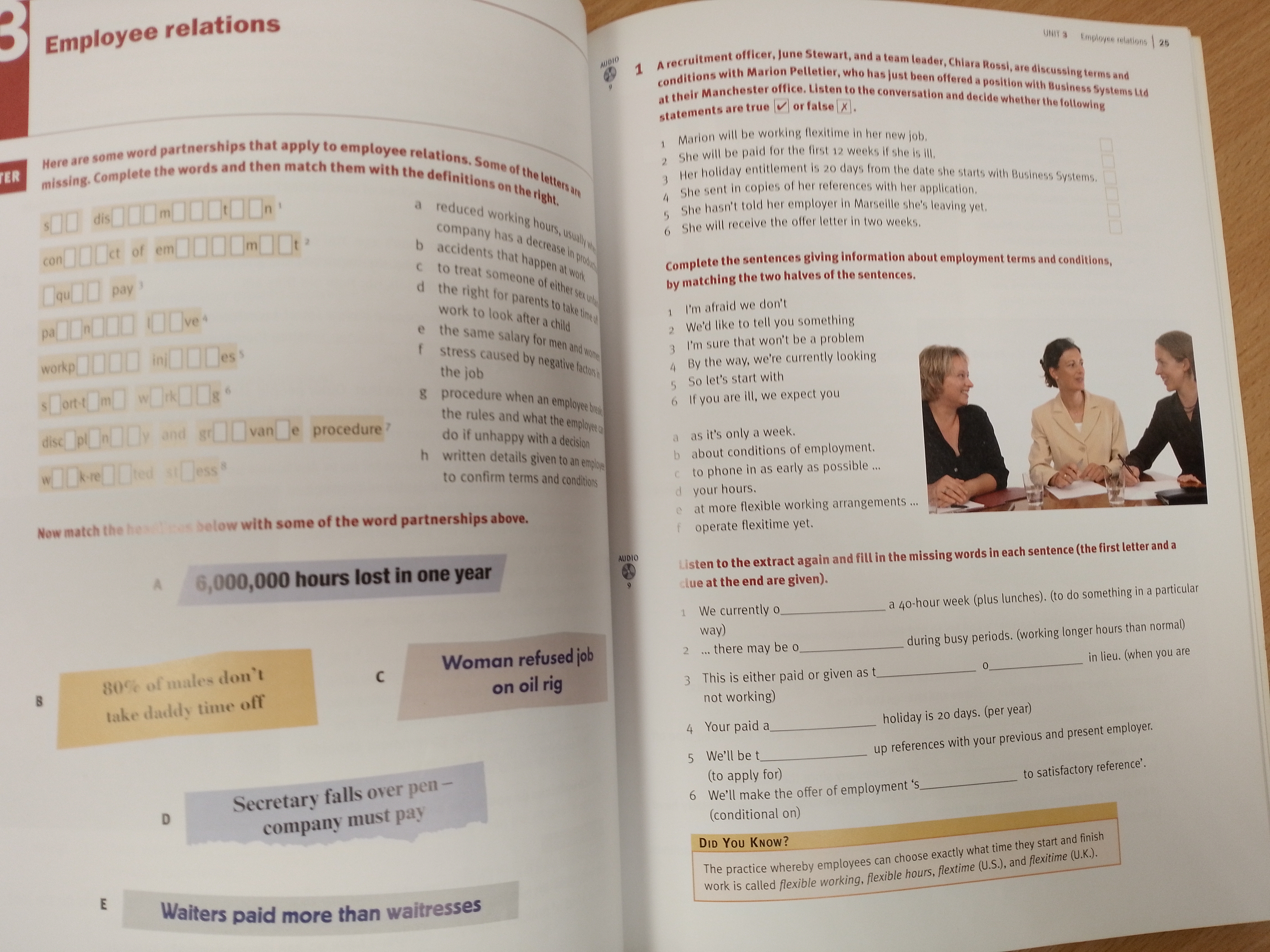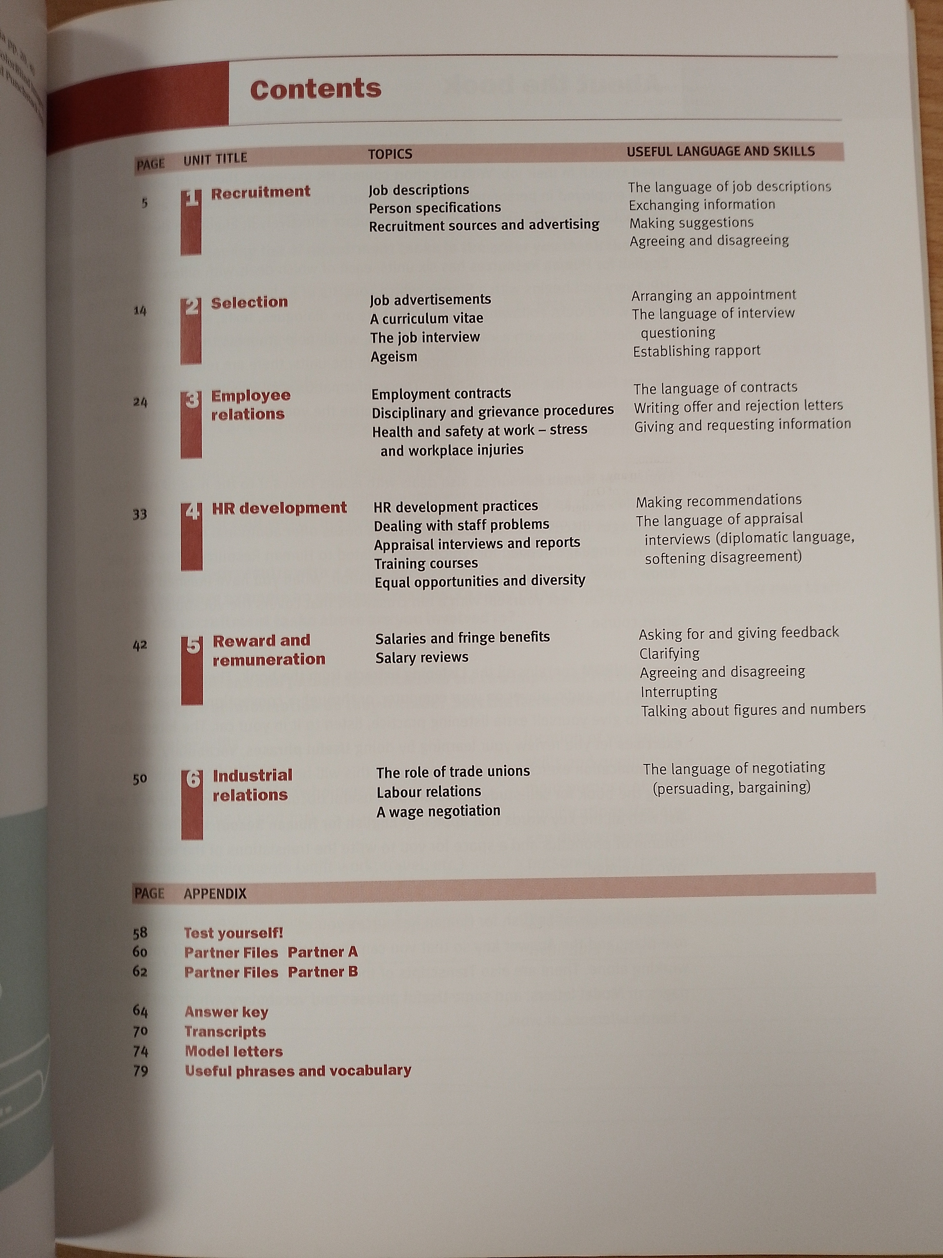 English for Human Resources is suitable for HR managers, their staff, and also those employed in personnel agencies. The course teaches students the relevant expressions and vocabulary they need to communicate effectively in their field. Each unit of English for Human Resources addresses different issues relevant to the field of HR, including recruitment, employee relations, and rewards and benefits.