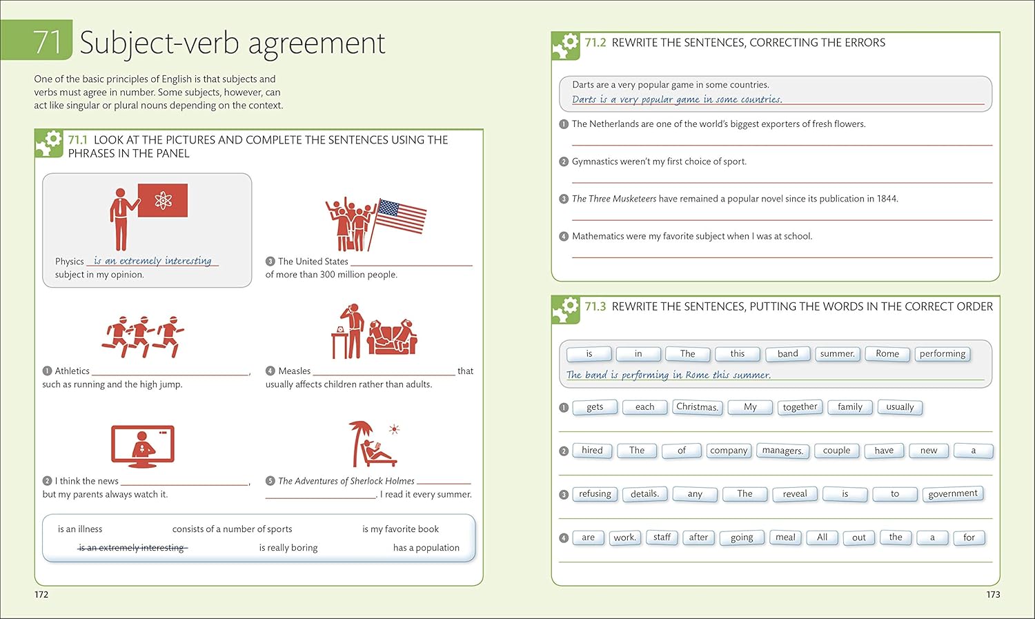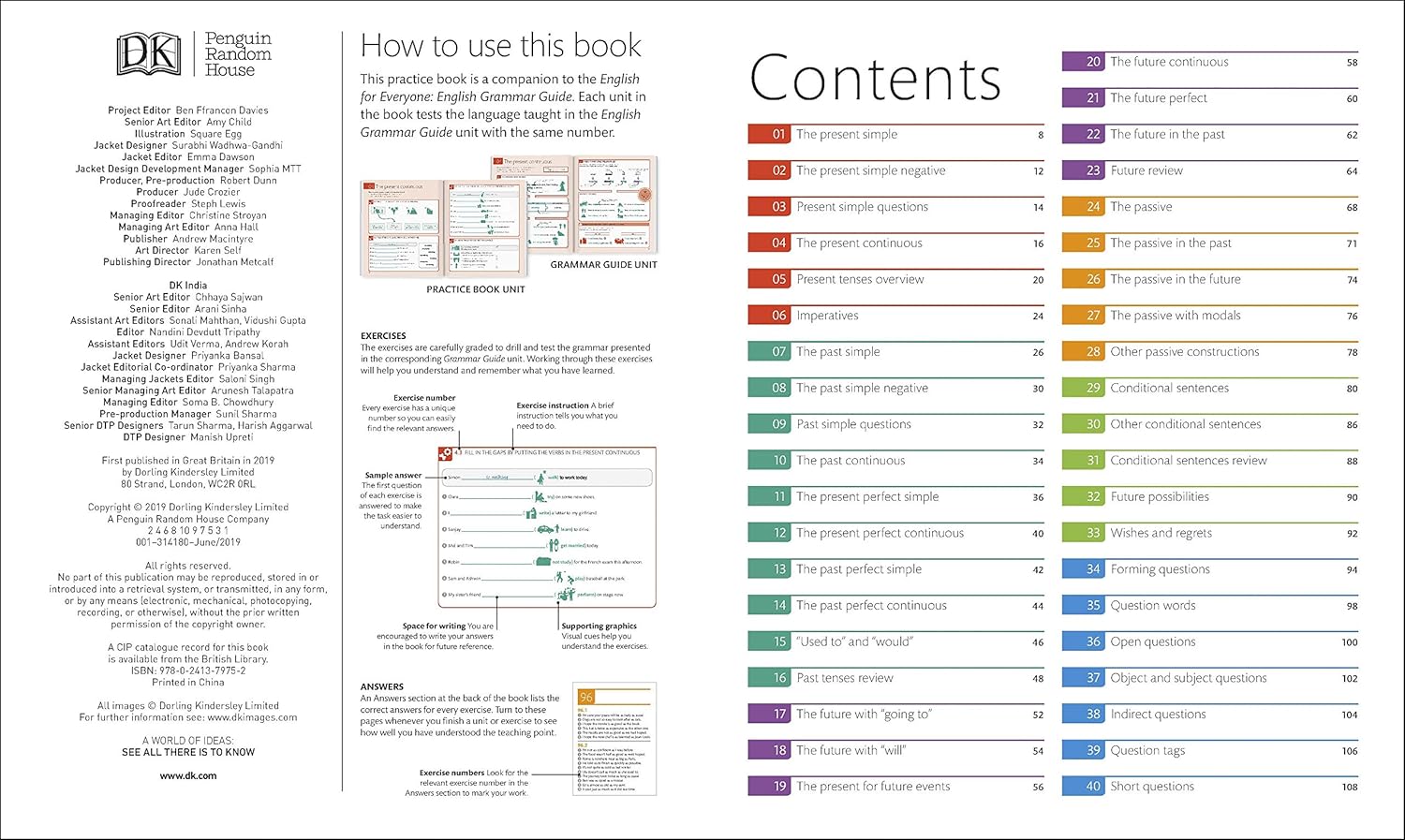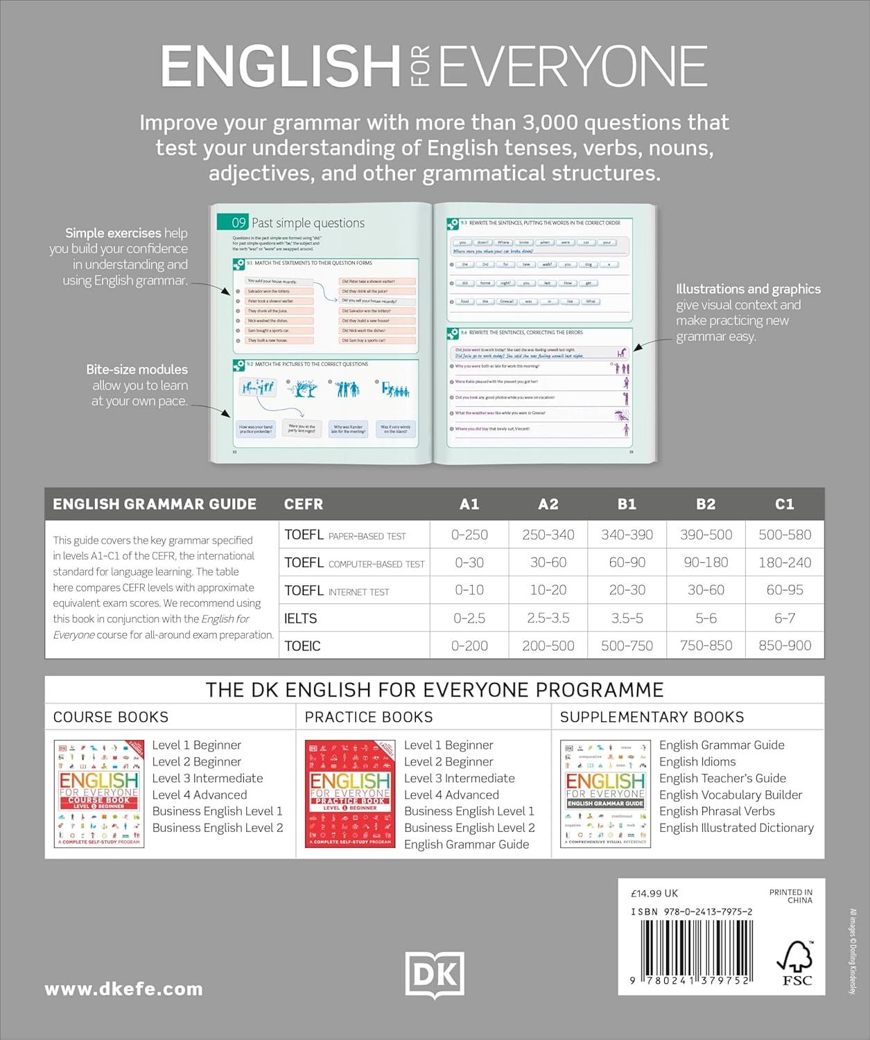 Puzzled by past tenses Confused by comparatives This clearly structured and beautifully presented workbook is packed with grammar practice activities that make learning English grammar incredibly easy.The English for Everyone English Grammar Guide Practice Book is an essential companion to the English for Everyone English Grammar Guide, a comprehensive reference book that makes even the trickiest grammar rules clear and simple. The Practice Book mirrors the unit-by-unit structure of the Grammar Guide. Each Practice Book unit is full of carefully graded grammar exercises to drill and reinforce the grammar you have learned in the corresponding English Grammar Guide unit. These exercises will help you build up your confidence and become more fluent, giving you the chance to practise using the most important English grammar constructions again and again.