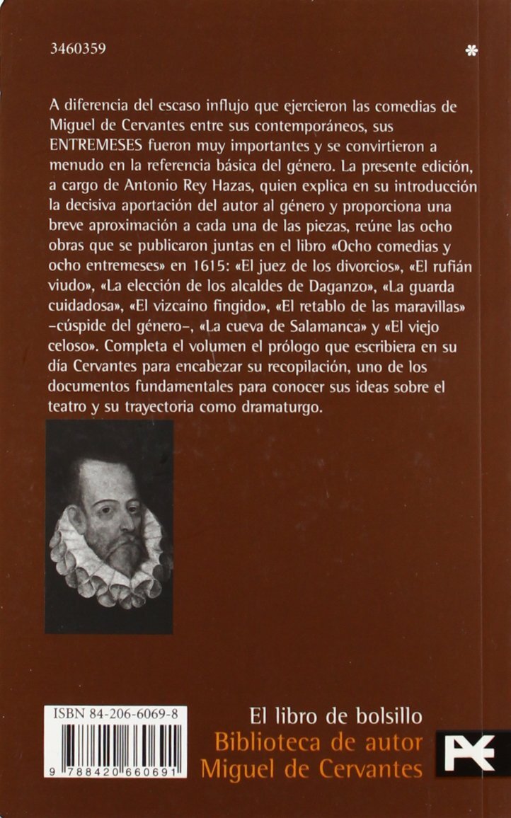 A diferencia del escaso influjo que ejercieron las comedias de Miguel de Cervantes entre sus contemporáneos, sus ENTREMESES fueron muy importantes y se convirtieron a menudo en la referencia básica del género. La presente edición, a cargo de Antonio Rey Hazas, quien explica en su introducción la decisiva aportación del autor al género y proporciona una breve aproximación a cada una de las piezas, reúne las ocho obras que se publicaron juntas en el libro «Ocho comedias y ocho entremeses» en 1615: «El juez de los divorcios», «El rufián viudo», «La elección de los alcaldes de Daganzo», «La guarda cuidadosa», «El vizcaíno fingido», «El retablo de las maravillas» cúspide del género, «La cueva de Salamanca» y «El viejo celoso». Completa el volumen el prólogo que escribiera en su día Cervantes para encabezar su recopilación, uno de los documentos fundamentales para conocer sus ideas sobre el teatro y su trayectoria como dramaturgo.