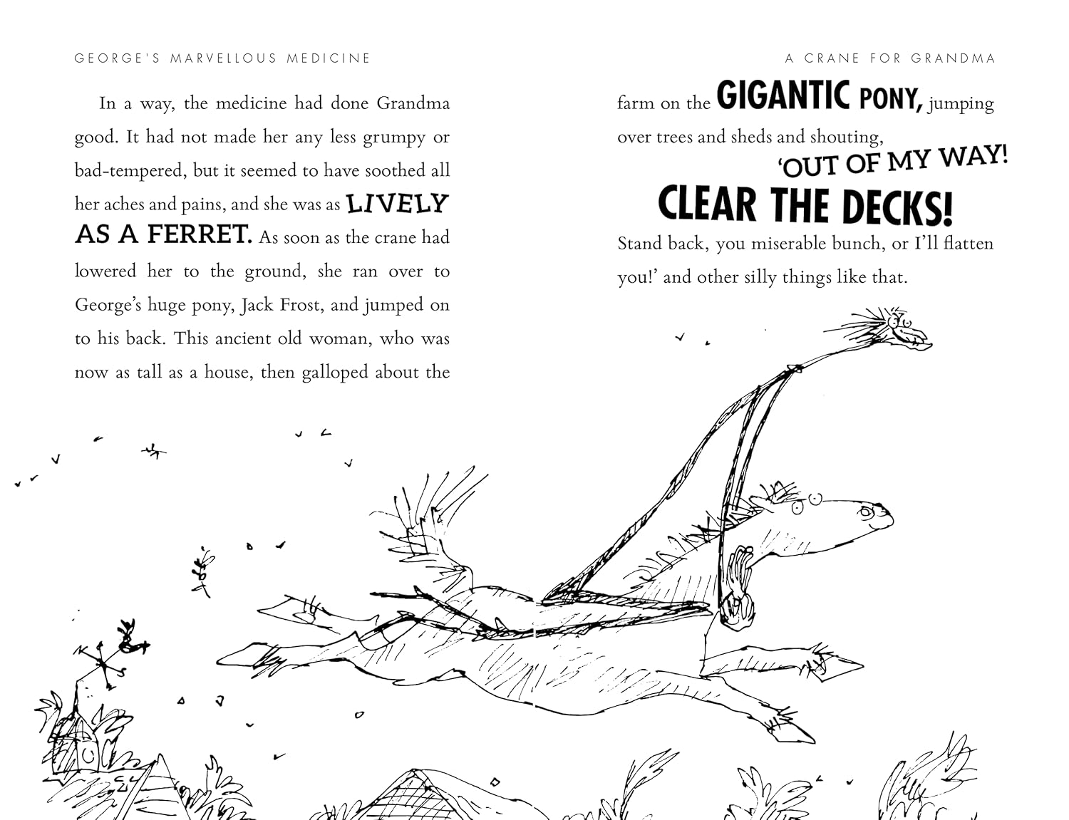 Using some rather unusual ingredients, George creates his magic medicine*. But will it stop his grandma from being so horrible . . . or will it shoot sparks out of the top of her head?!