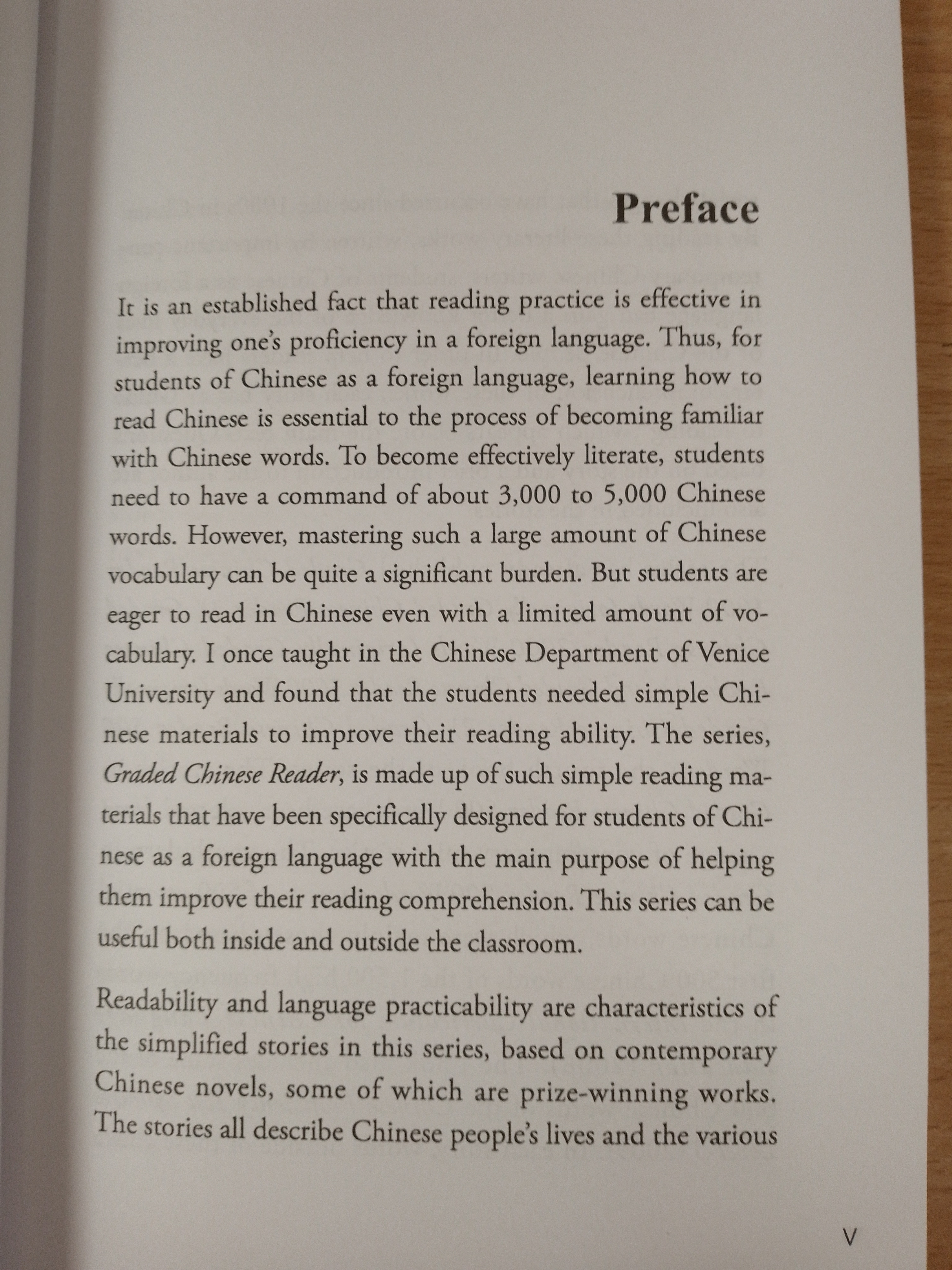 This is the fourth book of the Graded Chinese Reader series tailoring for foreigner Chinese language learners at new HSK Level 2 & 3 or above. The book can both serve as a Chinese reading textbook and also an after-school extensive reading material. It includes 15 award-winning mini-stories from China. The book has the following features: 1.Abridged versions of mini-stories written by contemporary Chinese writers, reflecting the everyday lives of ordinary Chinese people; 2.The vocabulary in this book consists of 500 essential Chinese words, which are mainly chosen based on the first 500 Chinese words of the 1,500 high frequency words in the International Curriculum for Chinese Language Education (2008). The book also includes some of the 600 Chinese words of the Chinese Proficiency Test Syllabus Level 3 (2009). The 500 high frequency words along with some new HSK Level 3 words that appear in the book are all included in the glossary; 3.Commonly used words appear in high frequency to form concise and short sentences with complete structure; 4.Pinyin is added to the complete text, English notes or sample sentences for difficult words and sentences are provided; The same side note may appear again in the following articles to facilitate readers who want to choose an article of interest from those offered . 5.Guide to Reading and About the Author in English, and Questions in Chinese are provided for each story; 6.Accompanied by original illustrations and a CD in MP3 format.