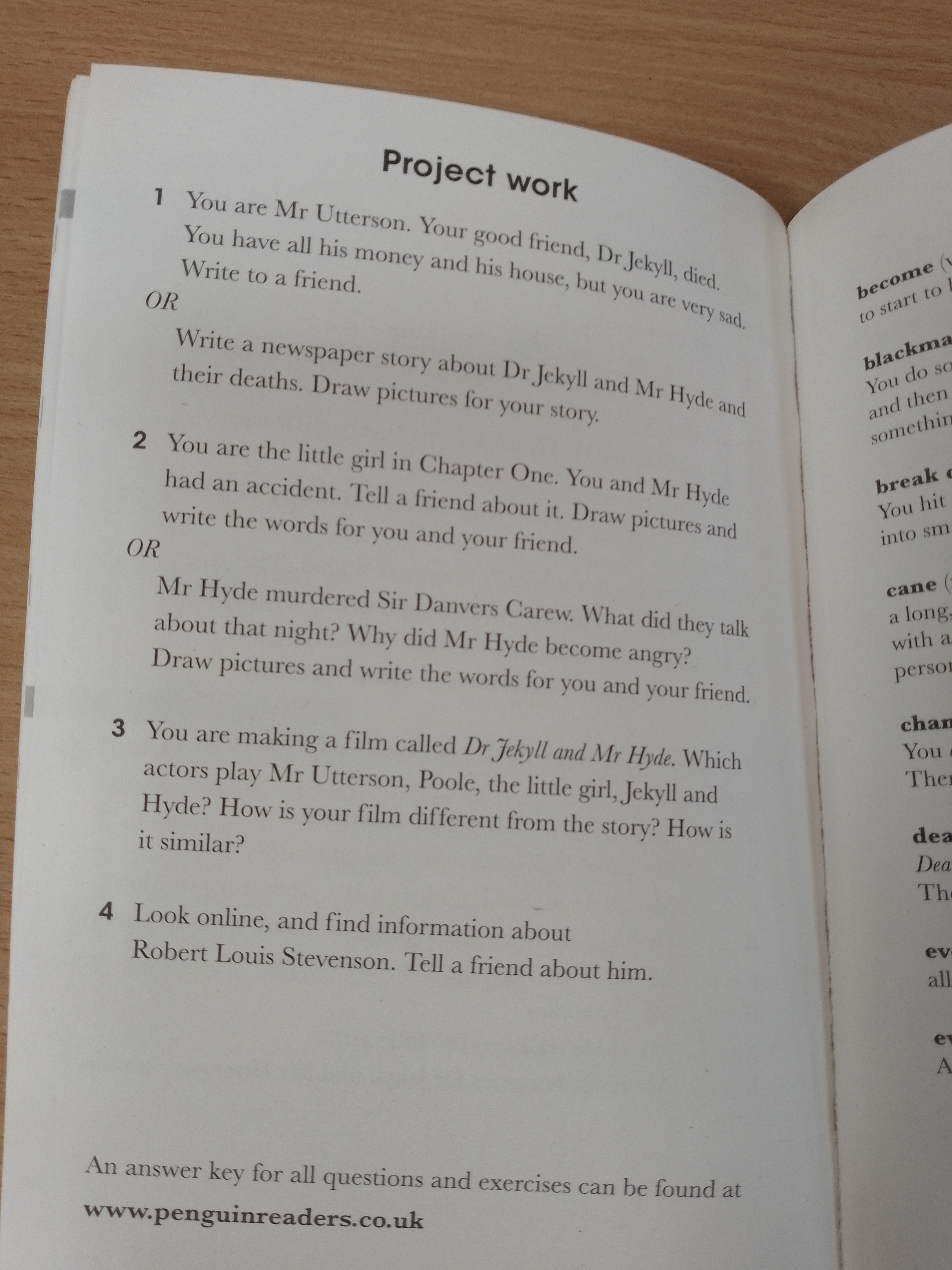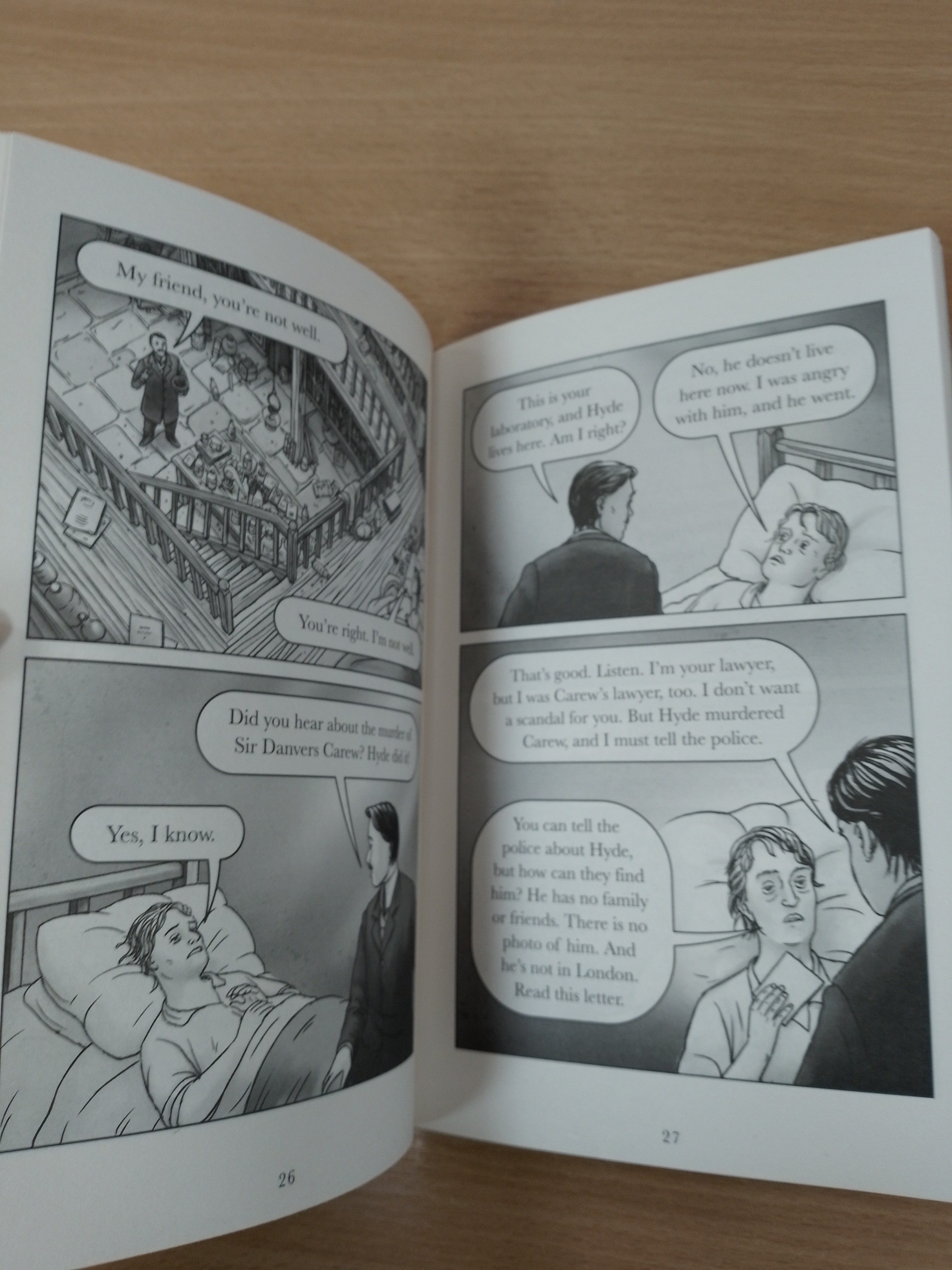 Jekyll and Hyde, a Level 1 Reader, is A1 in the CEFR framework. Short sentences contain a maximum of two clauses, introducing the past simple tense and some simple modals, adverbs and gerunds. Illustrations support the text throughout, and many titles at this level are graphic novels.