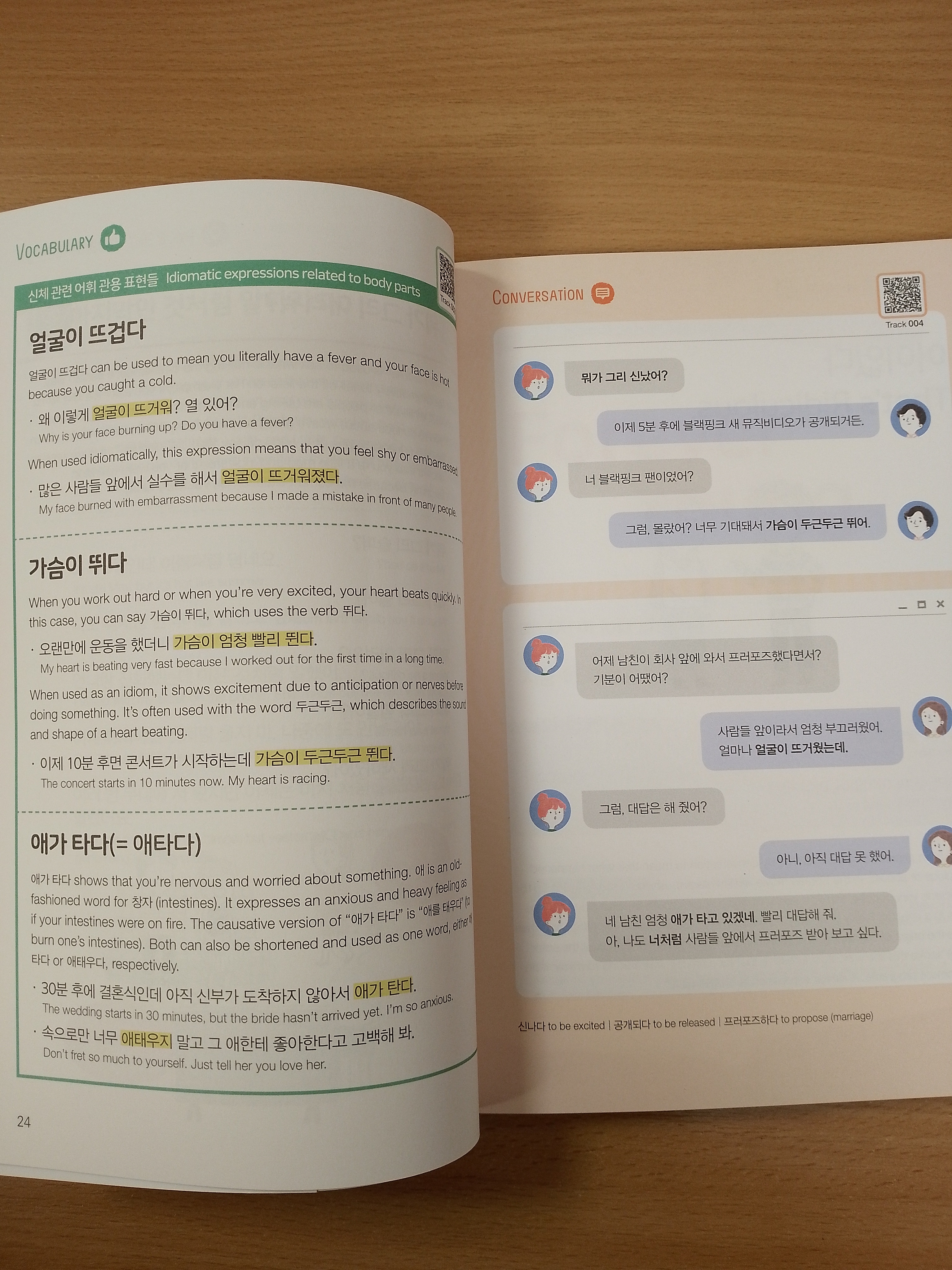 Using K-Pop lyrics this book captures a learners’ interest, expediting the learning process of Korean words and expressions that can be used in various situations. Also, simply by scanning the QR codes, you can instantly hear the example sentences and vocabulary, recorded by a native Korean voice actor.
