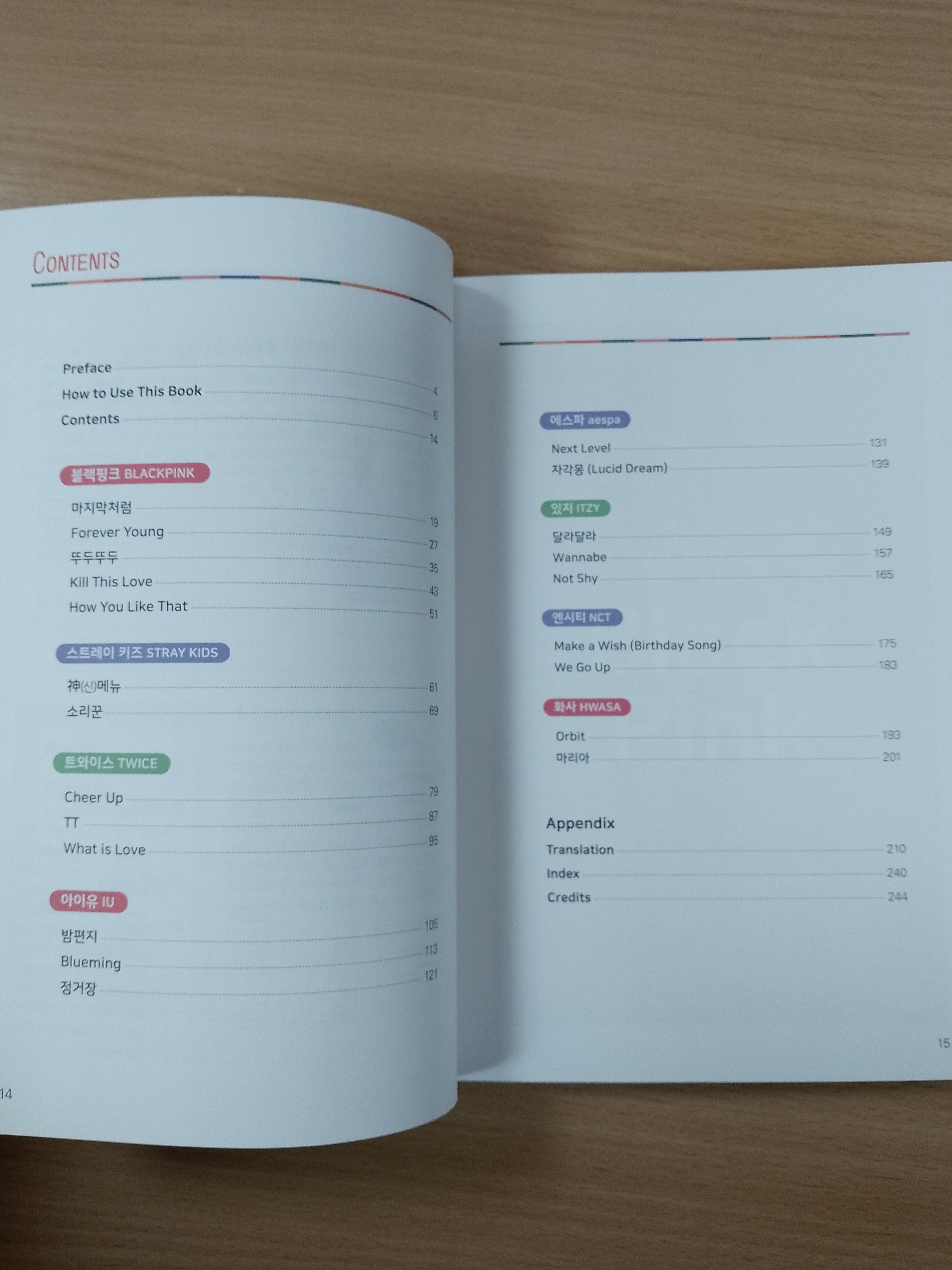 Each lesson contains example sentences of each expression, along with English translation, enabling learners to take on self-study, eliminating any unnecessary struggle. The additional appendix not only introduces K-Pop singers and their songs, but also presents grammar guides in Korean, making this book a useful material for both teachers and individual learners.