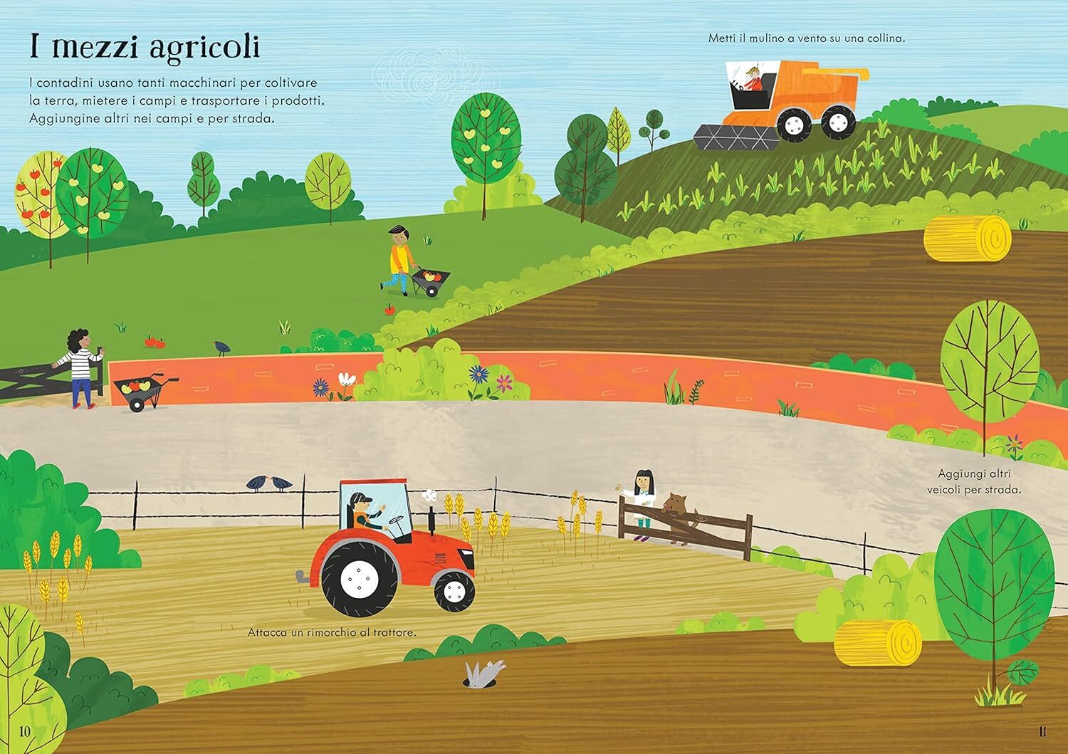 I più piccini si divertiranno un mondo a far prendere vita alla fattoria con gli oltre 250 adesivi riutilizzabili. Aggiungi maialini che giocano nel fango, pecore e agnellini nei campi, mucche nella stalla e galline nel pollaio, e scopri una fiera di campagna, macchinari per lavorare nei campi e tanto altro