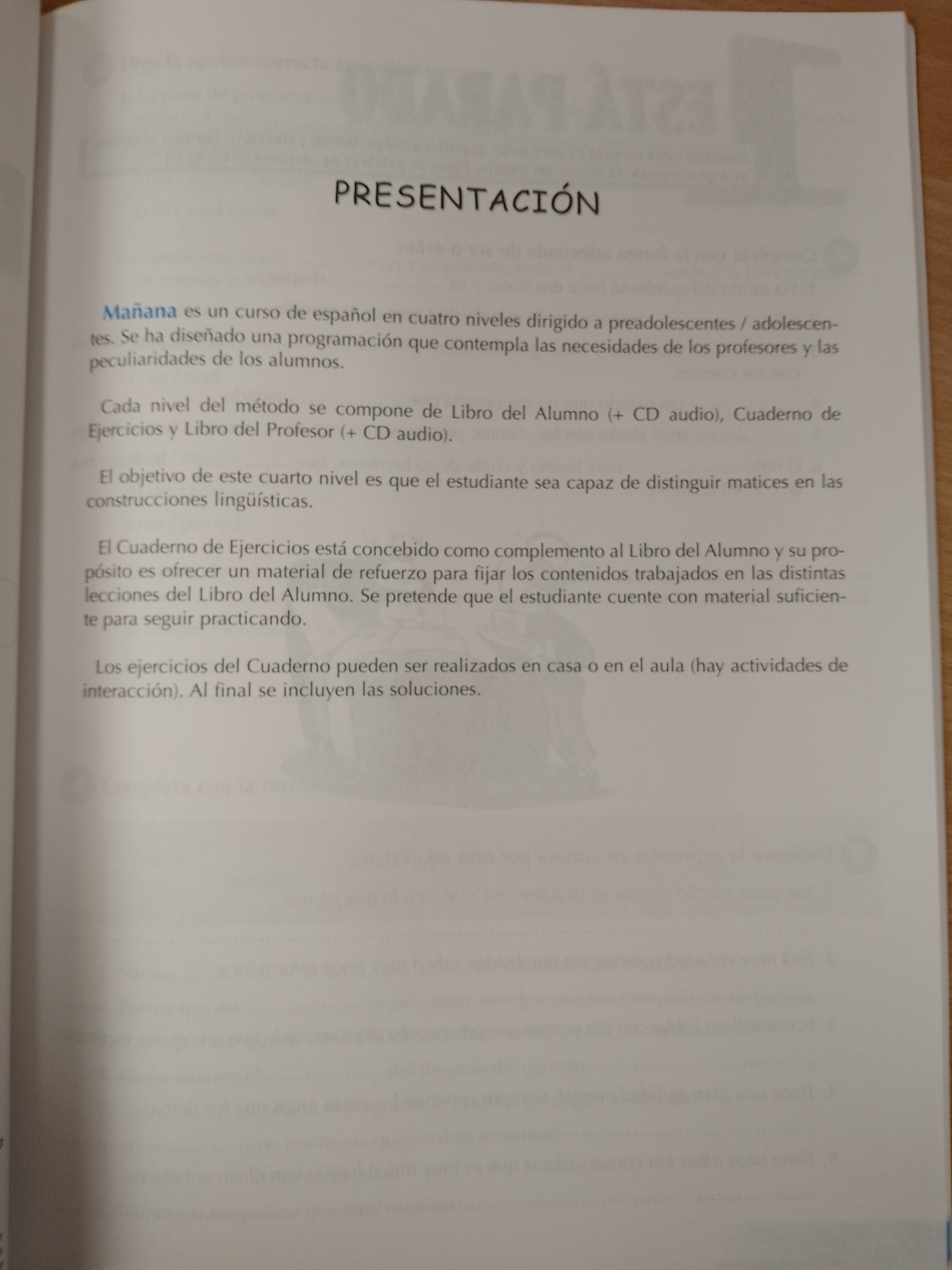 Mañana es un curso de español en cuatro niveles dirigido a preadolescentes / adolescen tes. Se ha diseñado una programación que contempla las necesidades de los profesores y las peculiaridades de los alumnos.