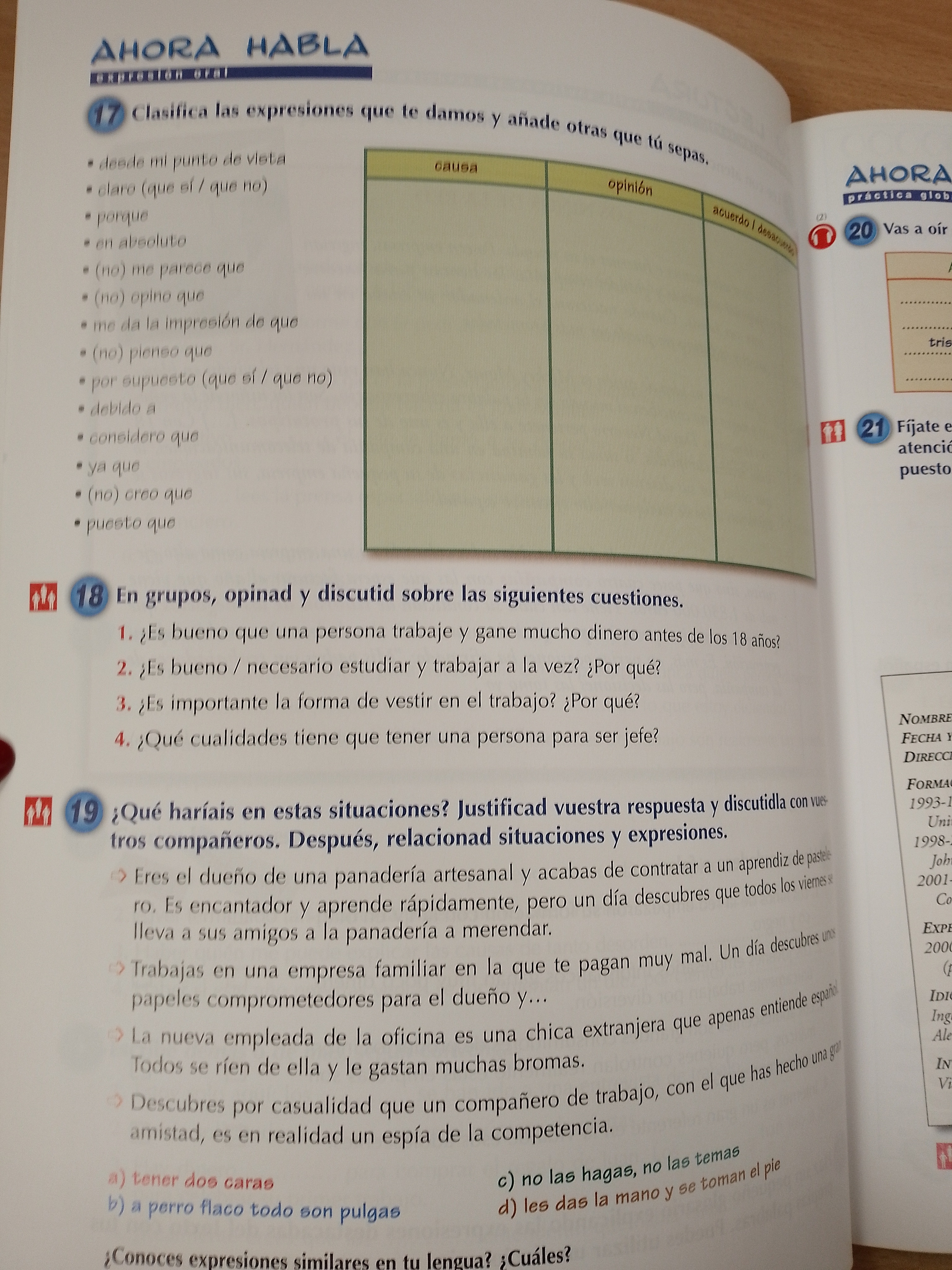 Hay un gran número de actividades con las que se practican las cuatro destrezas.