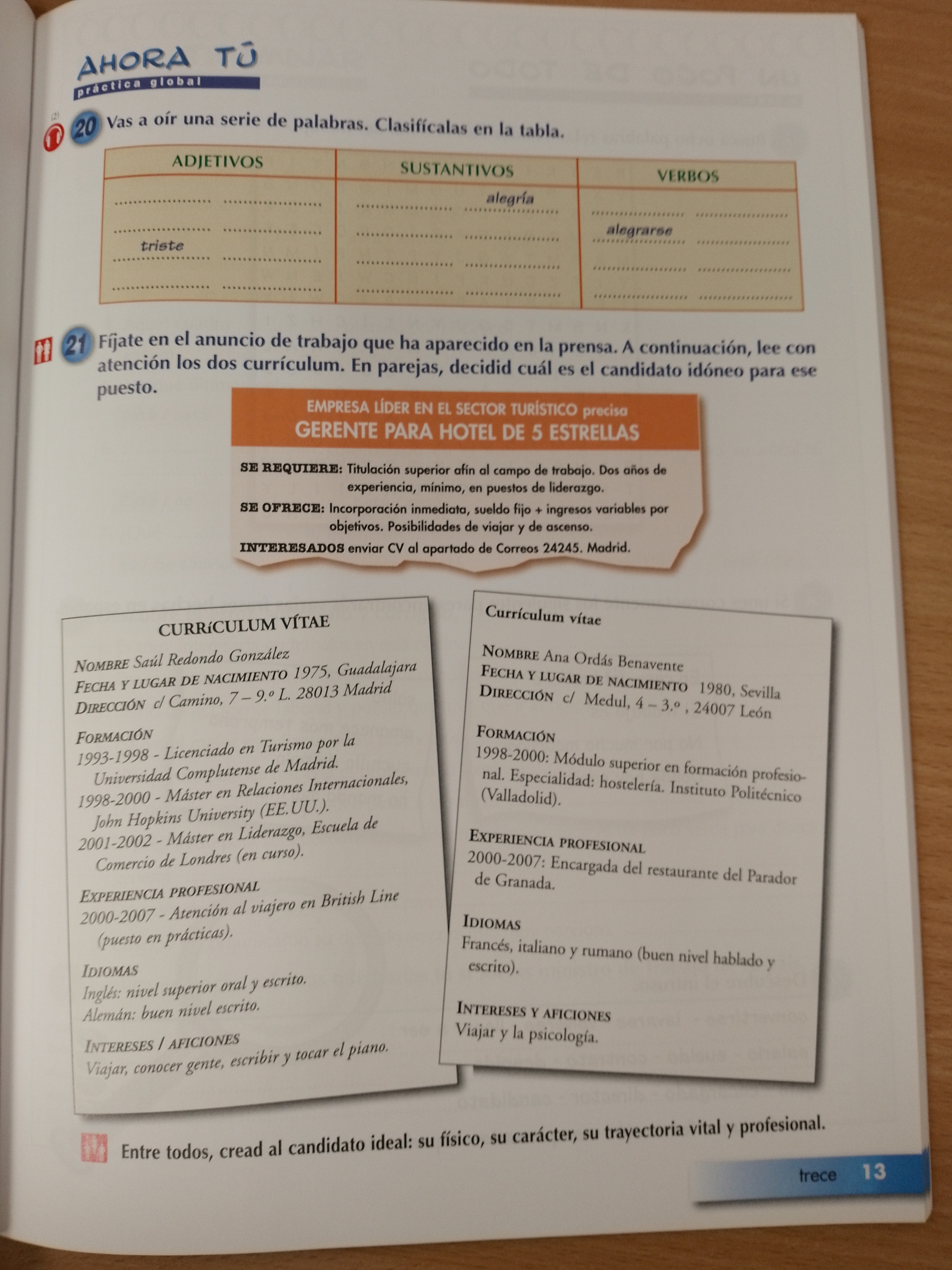 El vocabulario de cada lección corresponde a un ámbito específico y crece en dificultad.