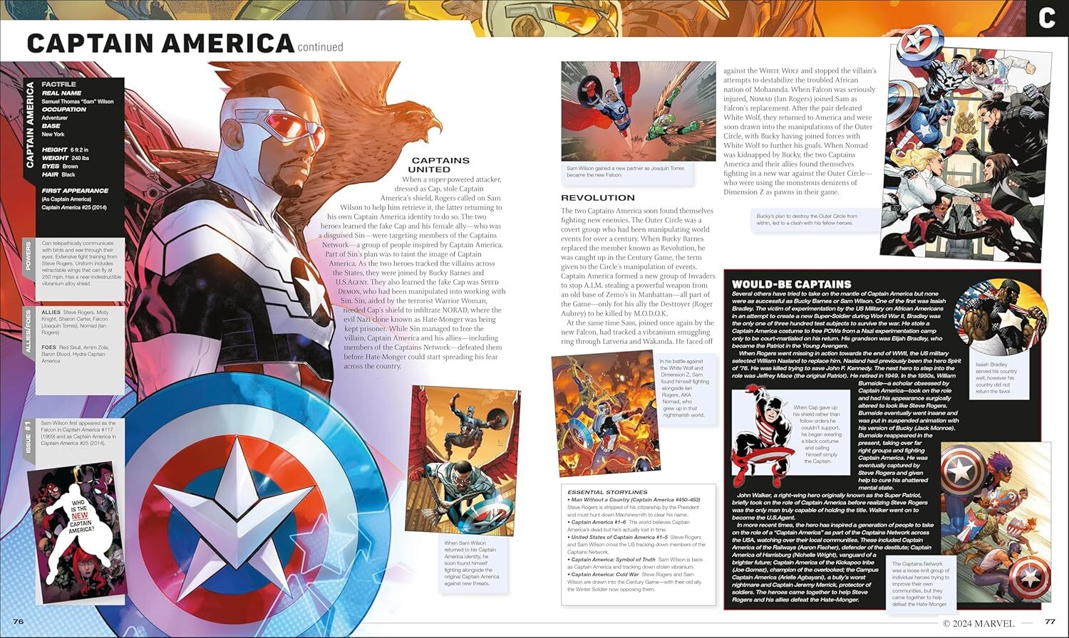 Major figures like Captain America and the Avengers have multi-spread sections, while even minor character entries contain details about their key attributes, allies, foes and storylines. This is the most complete guide to the Marvel Universe ever created.