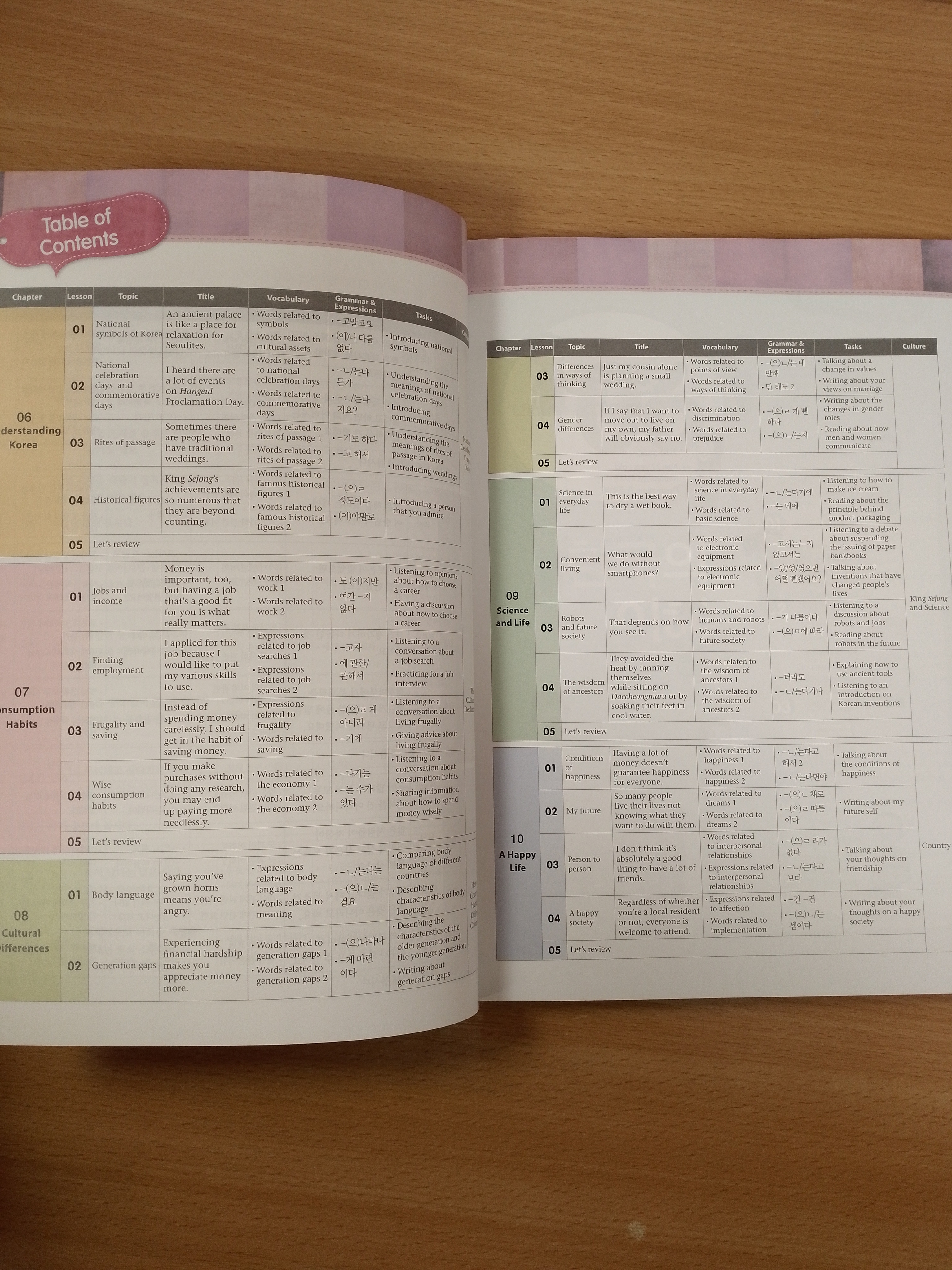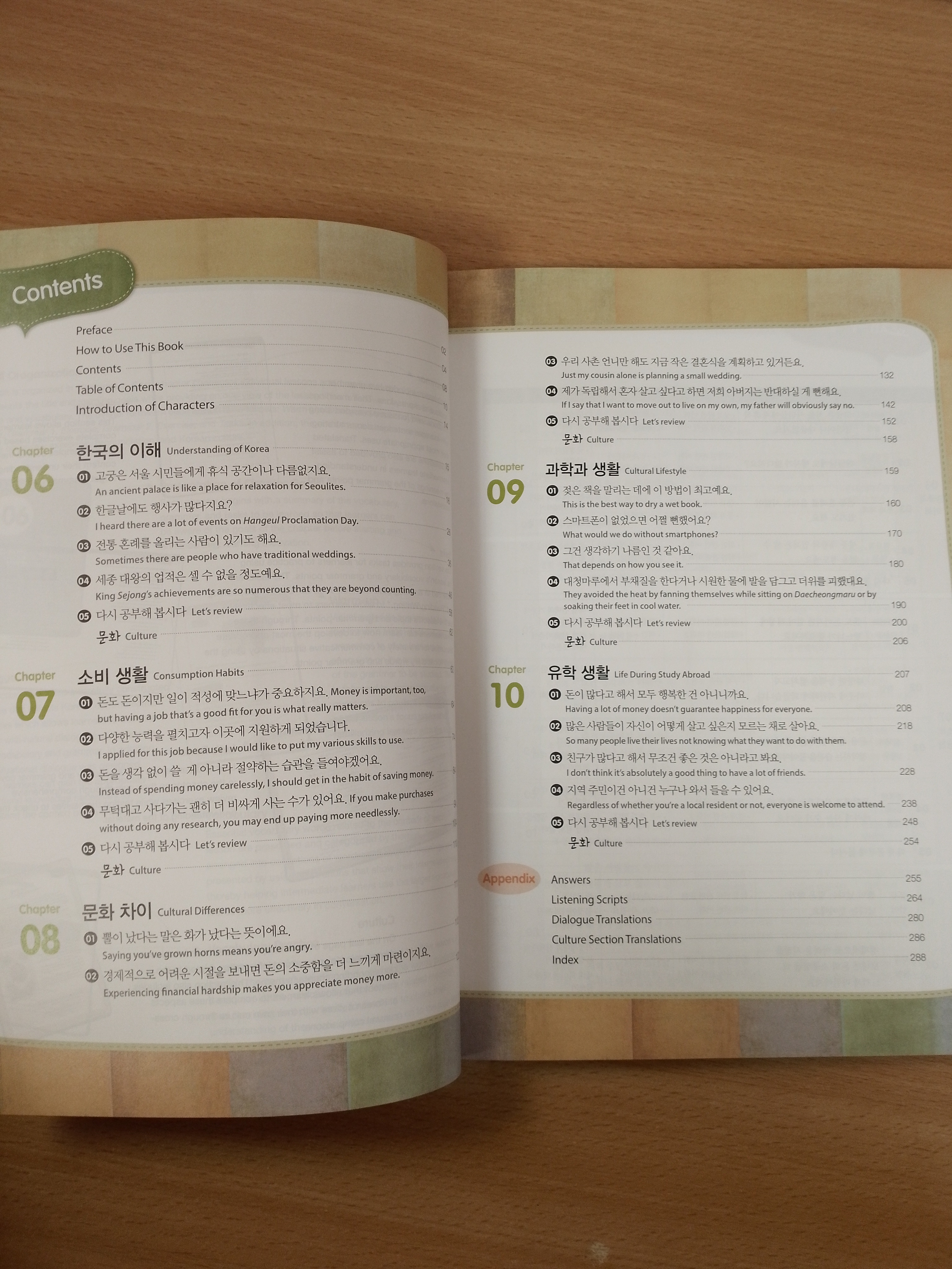 ▪ Real life materials on Korean culture with interesting topics and details Welfare facilities available for foreigners, Korean folk remedies, sharing of kimchi through gimjang (kimchi-making for winter) and other aspects of Korean culture that learners may want to know about appear in detailed and vivid texts, with English translation.