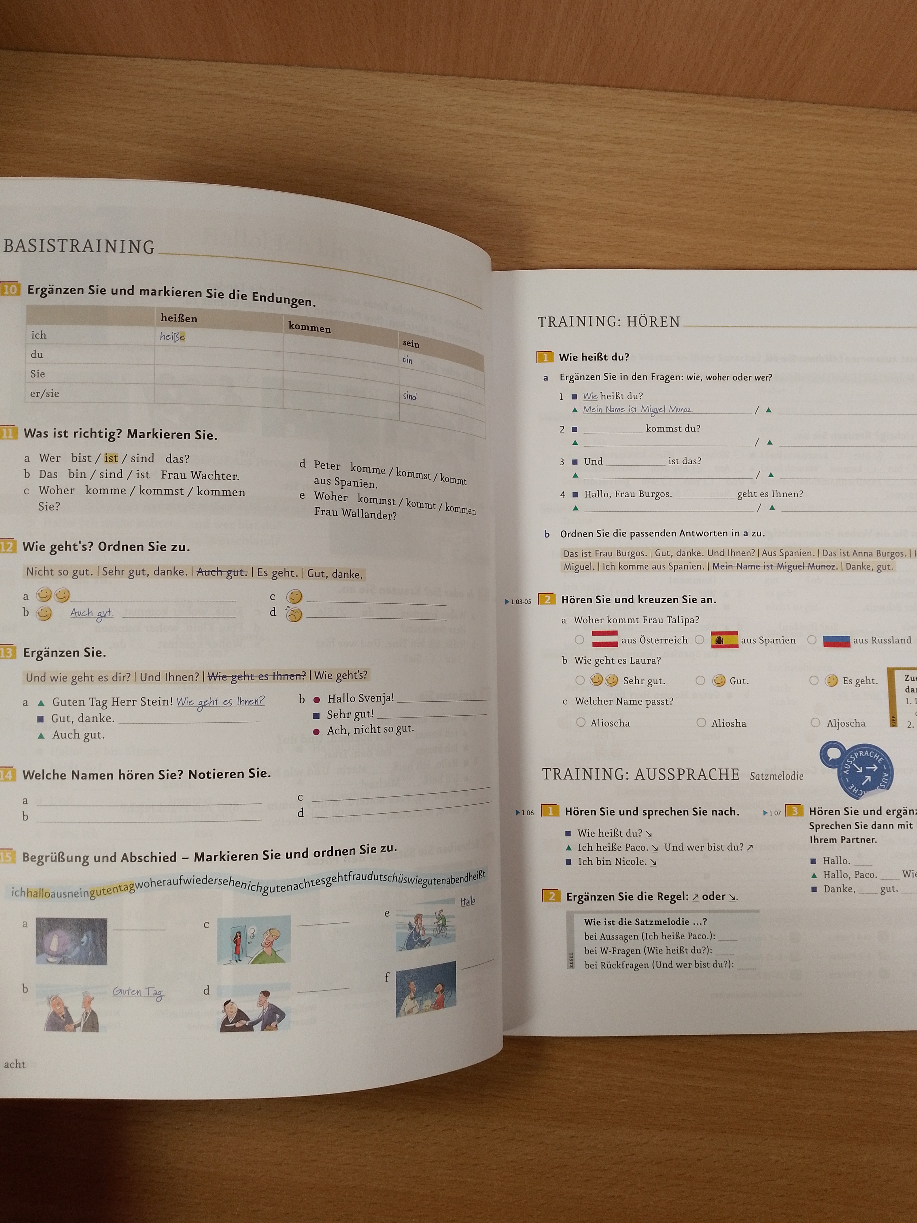 Wiederholungsübungen zu Wortschatz und Strukturen
