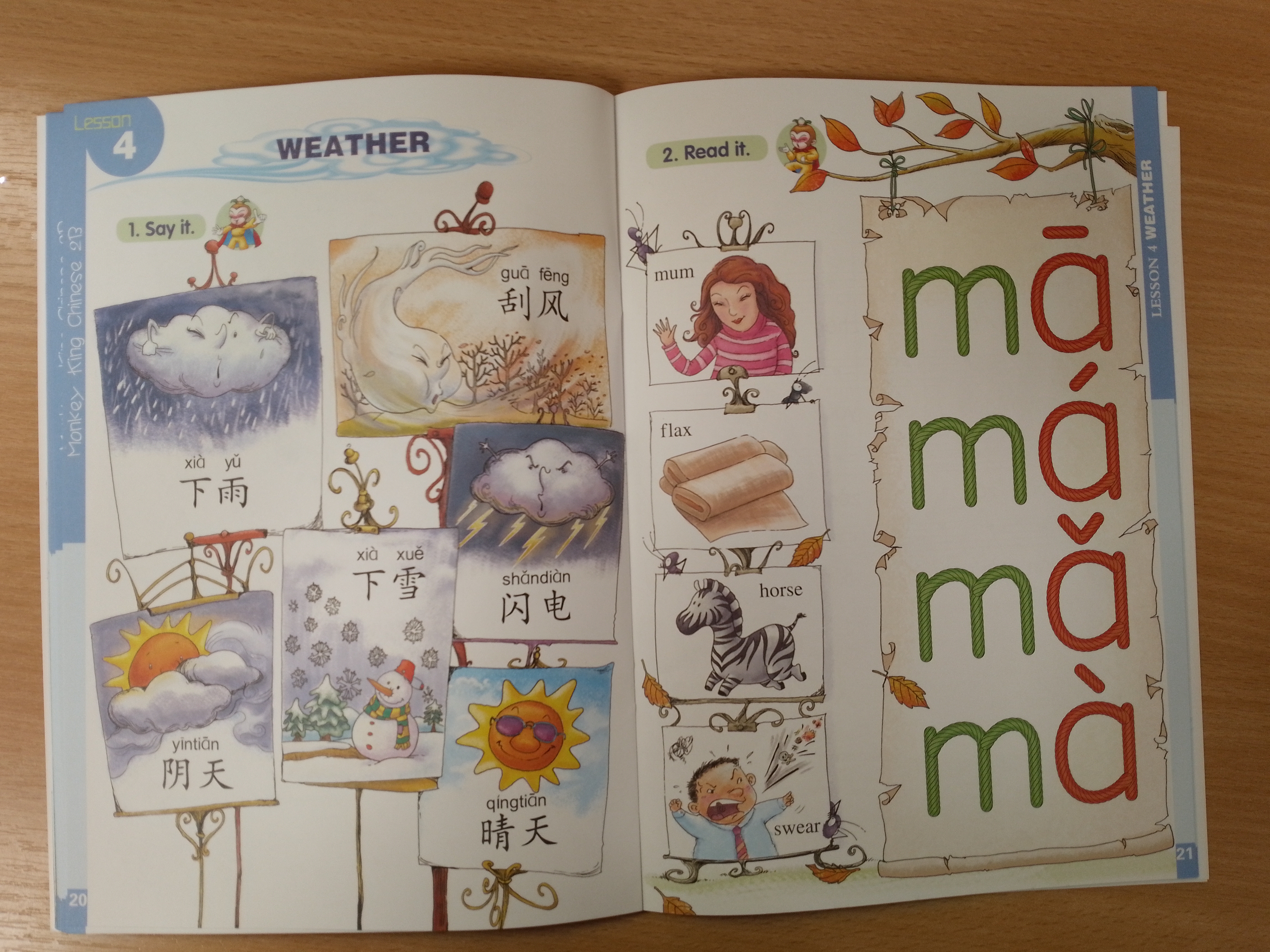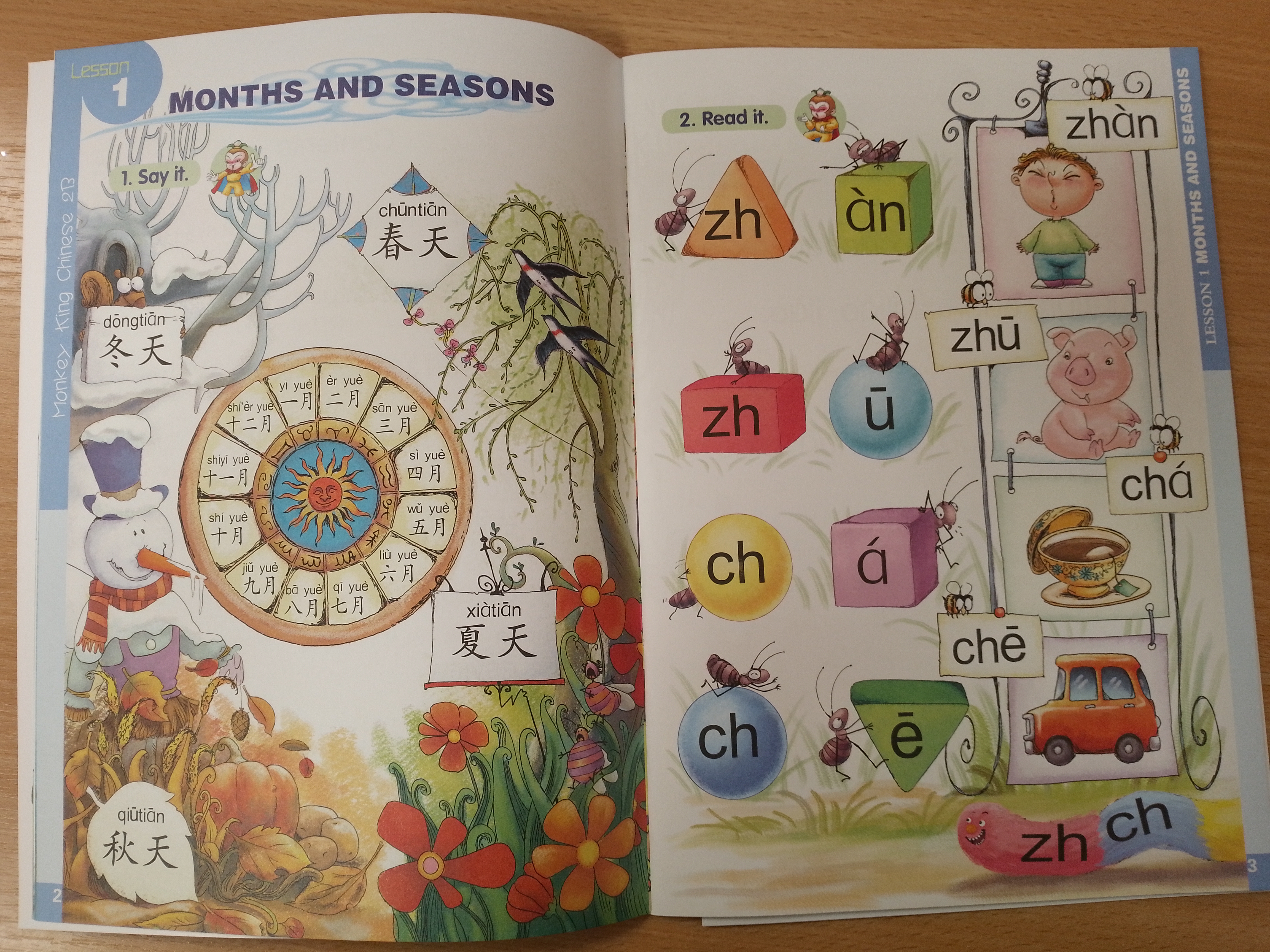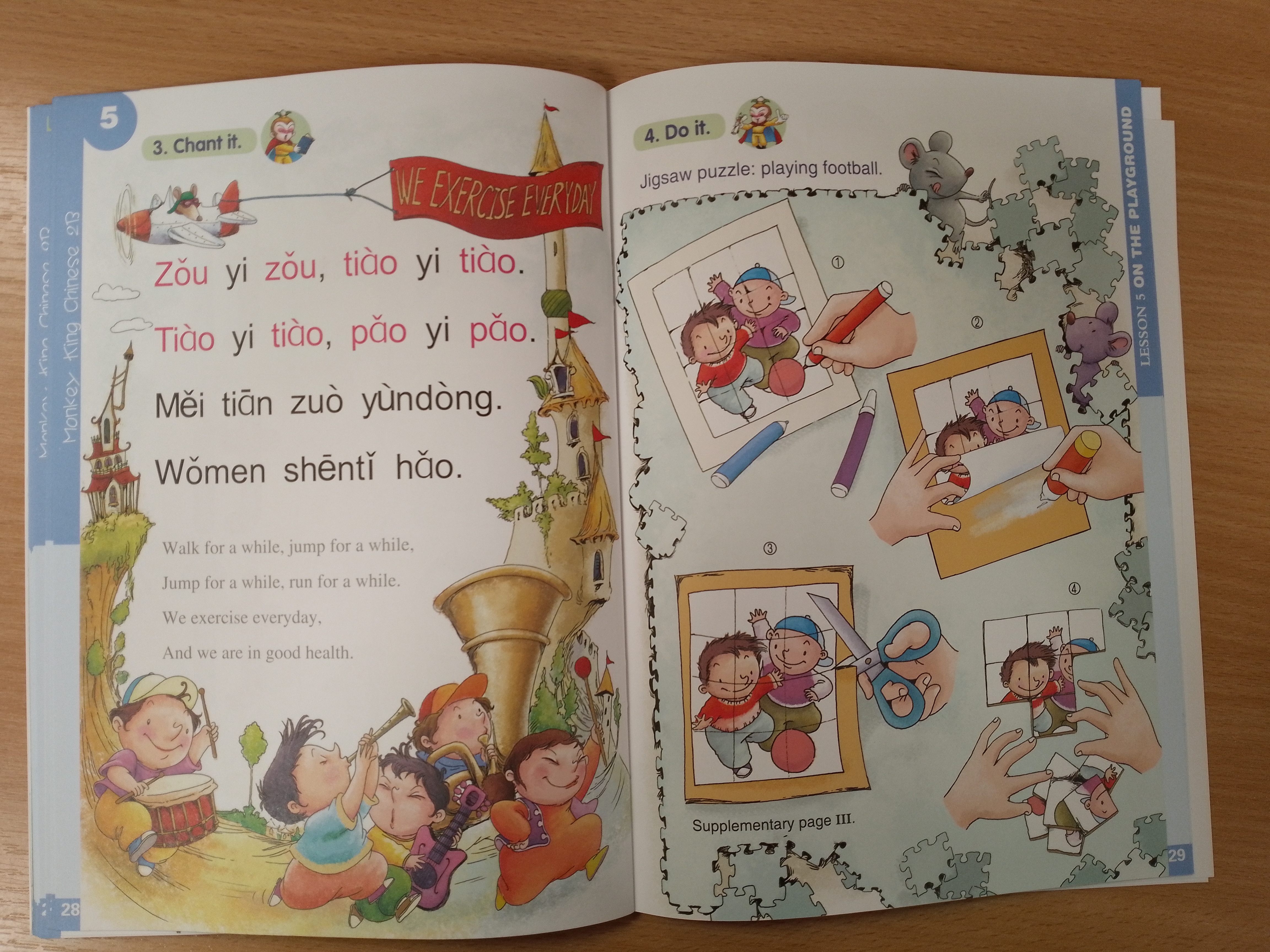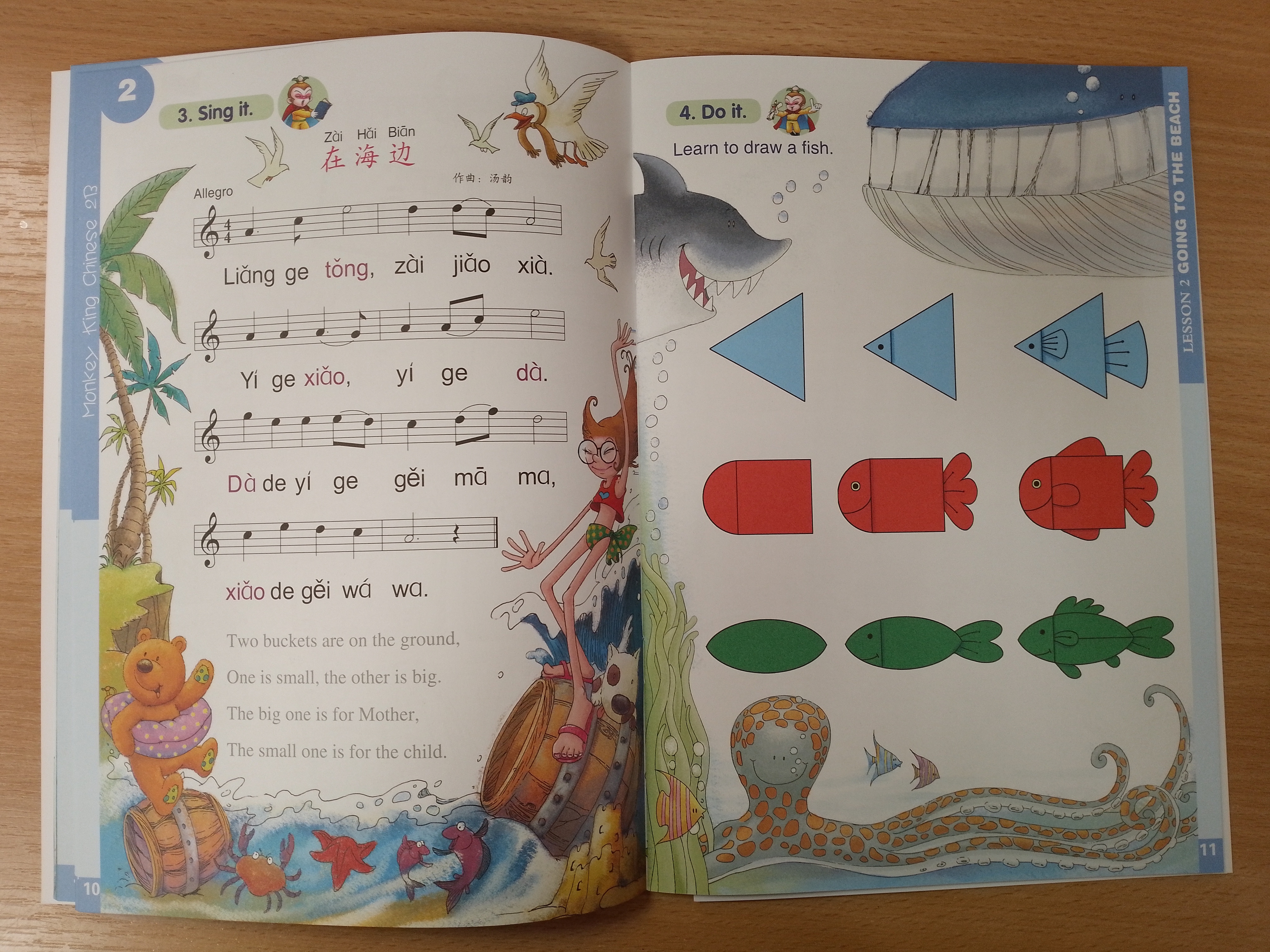 Monkey King Chinese (including school-age edition and preschool edition) is a series of elementary Chinese language primers for children. The school-age edition is designed for the children from the 1st year to the 3rd year in English-speaking countries. This series of textbooks is divided into three levels according to the year rank. Each level consists of two volumes, A and B. Level Three: Short sentences are the foundation, supplemented by nursery rhymes, Chinese characters coloring tasks, words and expressions for everyday use, handcraft, and exercises.