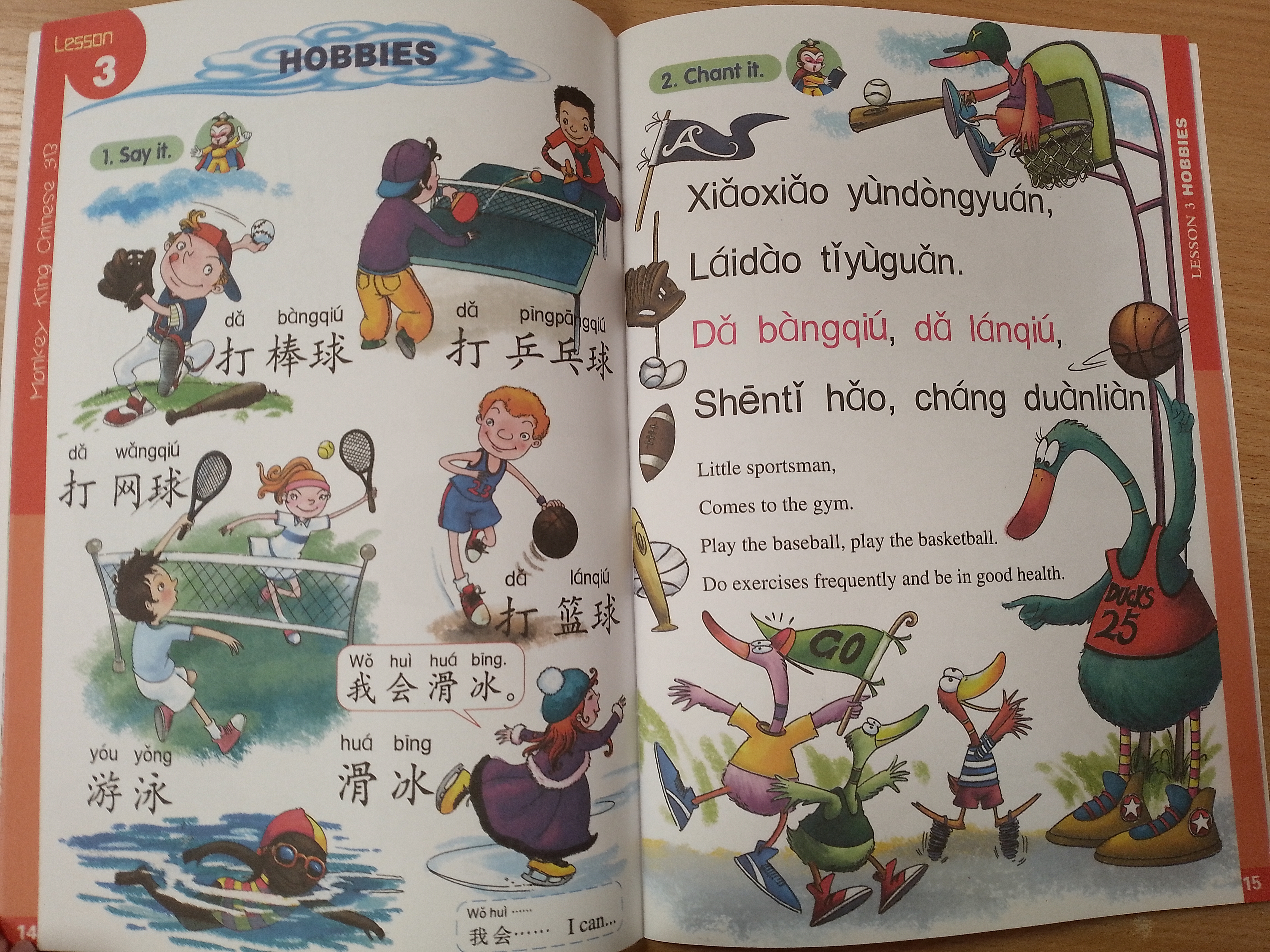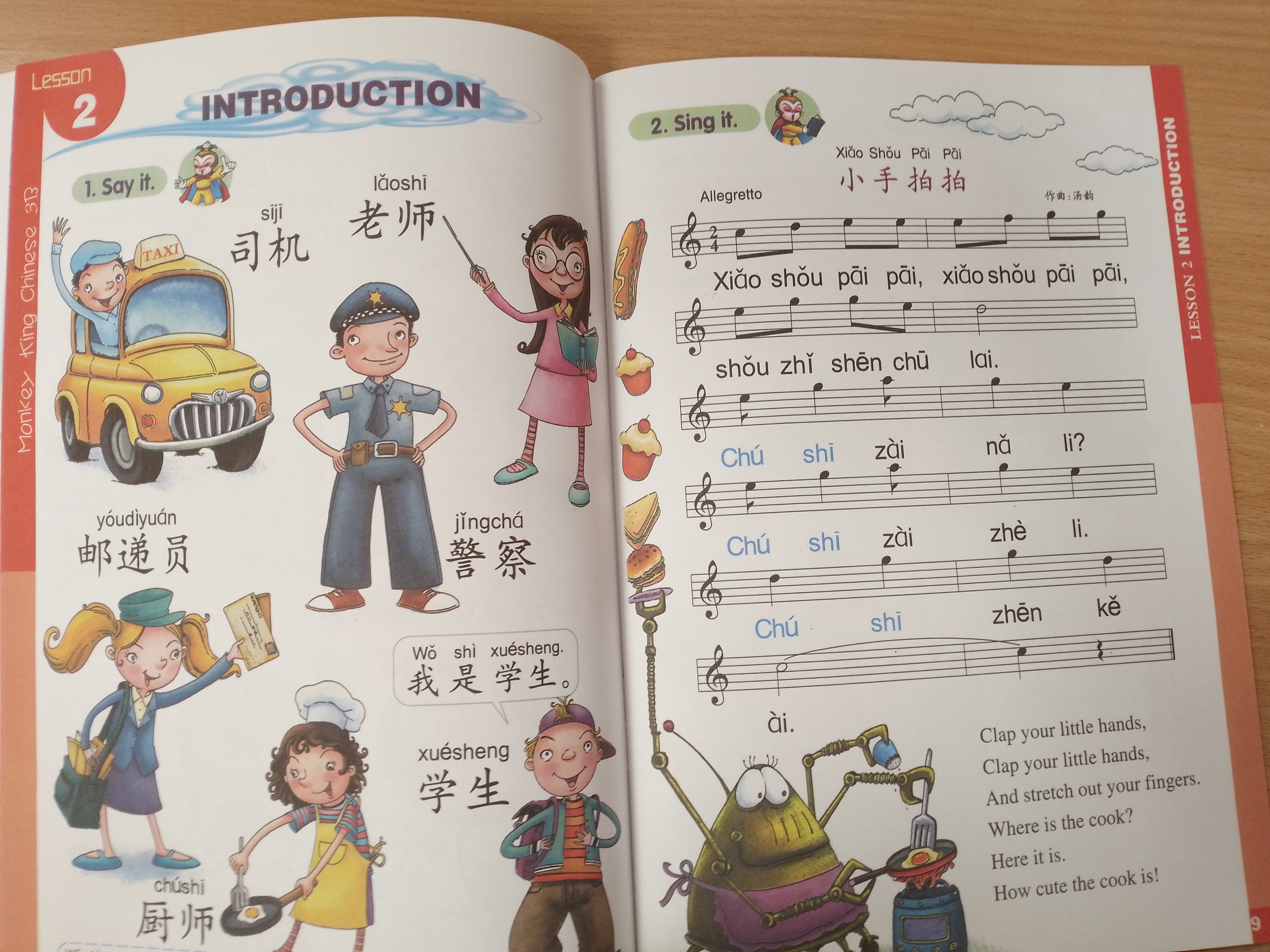 Monkey King Chinese (school-age edition) is a series of elementary Chinese language primers for primary school children from the 1st year to the 3rd year in English-speaking countries. This series of textbooks is divided into three levels according to the year rank. Each level consists of two volumes, A and B. Level Three: Short sentences are the foundation, supplemented by nursery rhymes, Chinese characters coloring tasks, words and expressions for everyday use, handcraft, and exercises. Monkey King Chinese (school-age edition) 3A: 46 new words, 6 lessons, 3 songs ,3 nursery rhymes, 1 CD , 2 pages of stickers