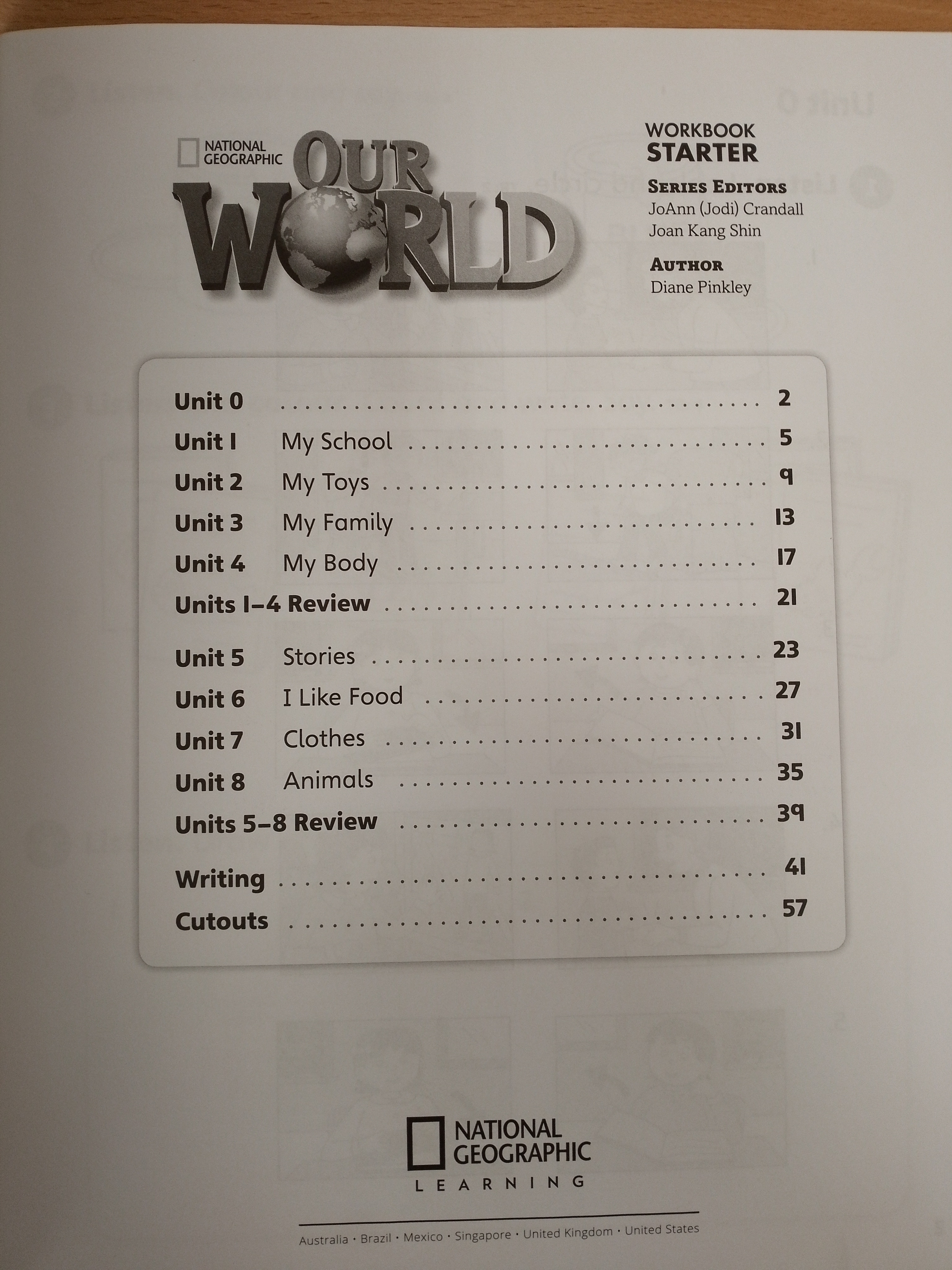 The Our World Starter Workbook provides young learners with activities that reinforce and consolidate the content of the Student's Book. These activities support listening, speaking and writing.