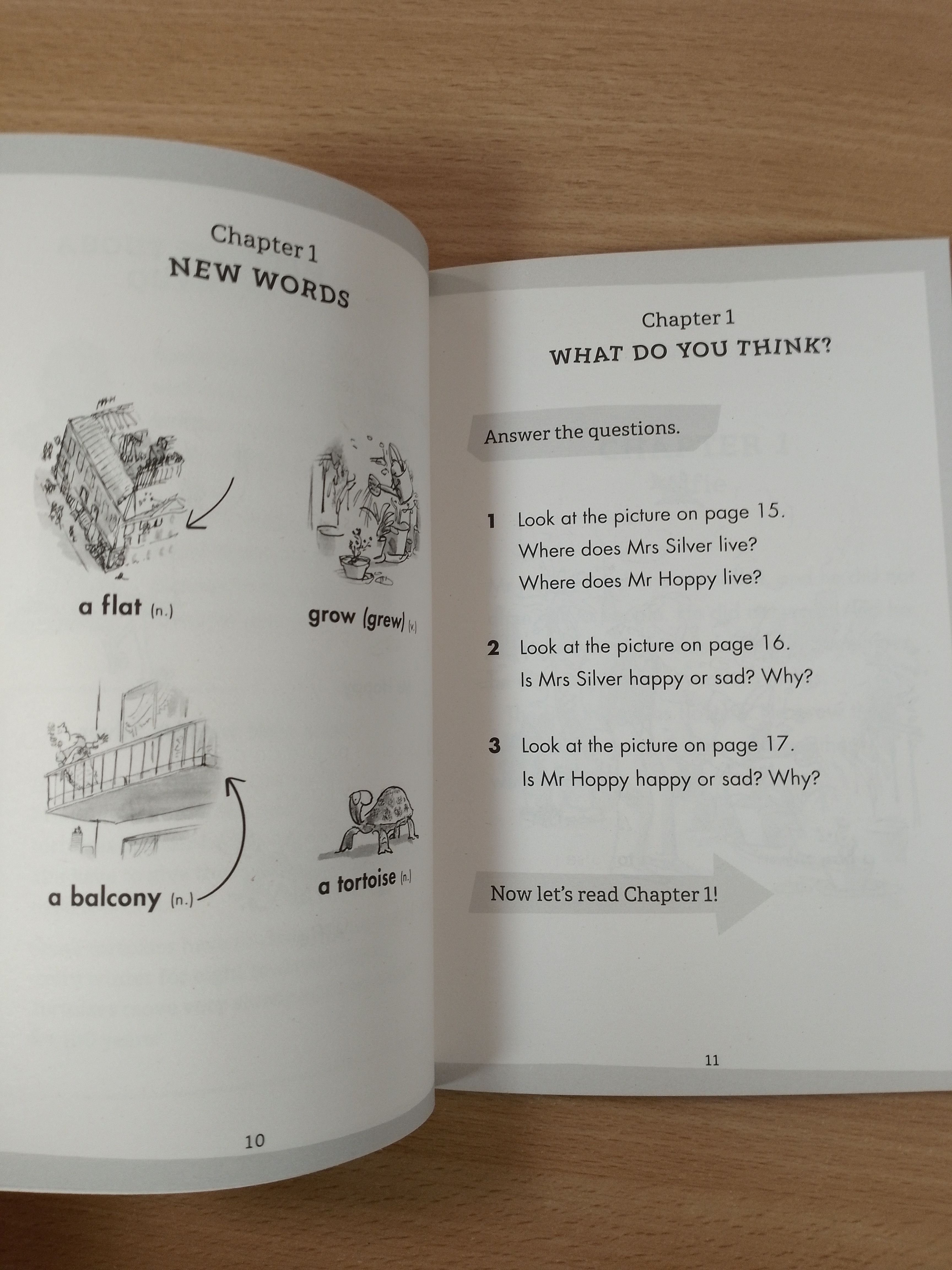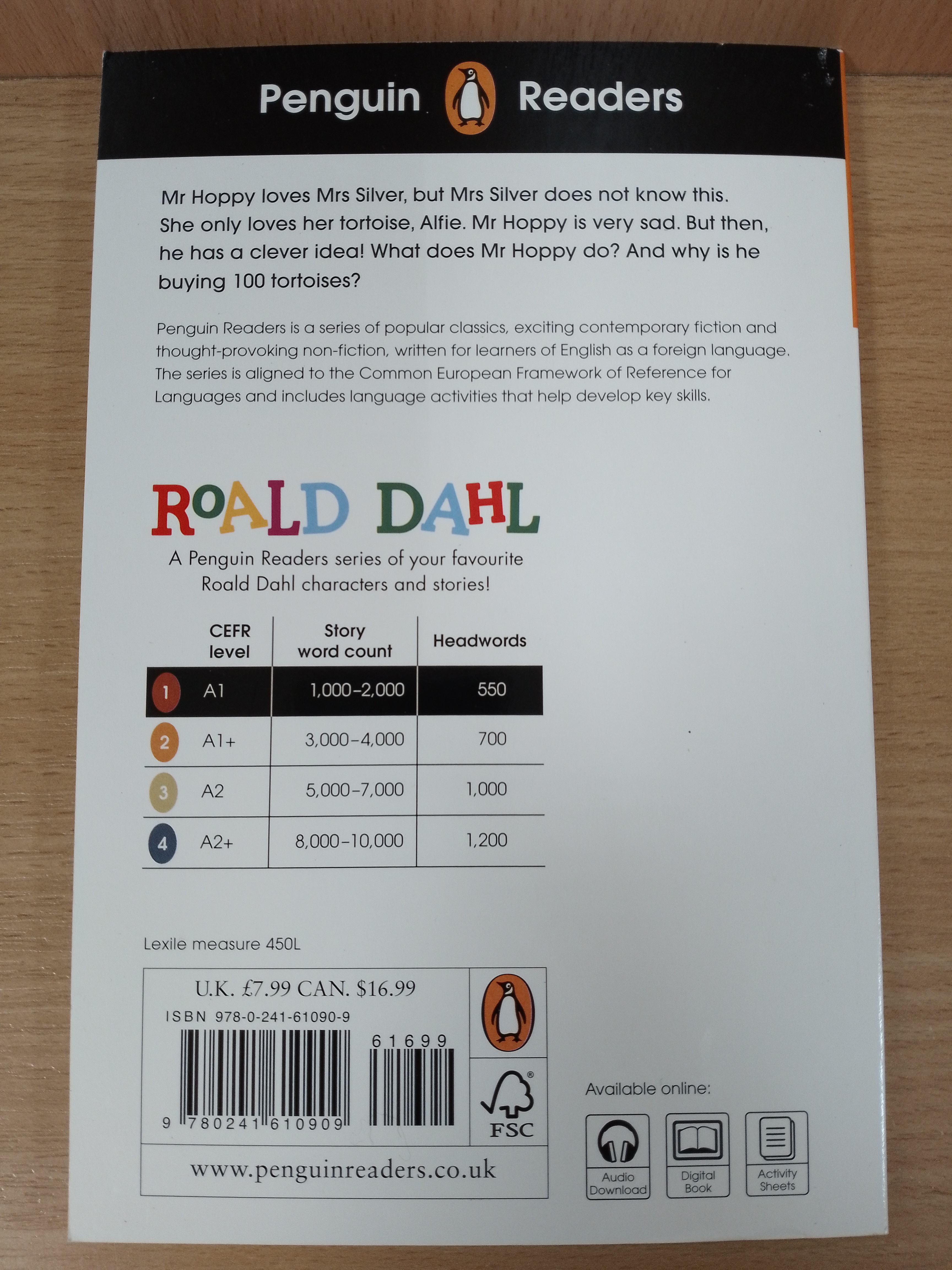 Esio Trot, a Level 1 Reader, is A1 in the CEFR framework. Short sentences contain a maximum of two clauses, introducing the past simple tense and some simple modals, adverbs and gerunds. Illustrations support the text throughout.