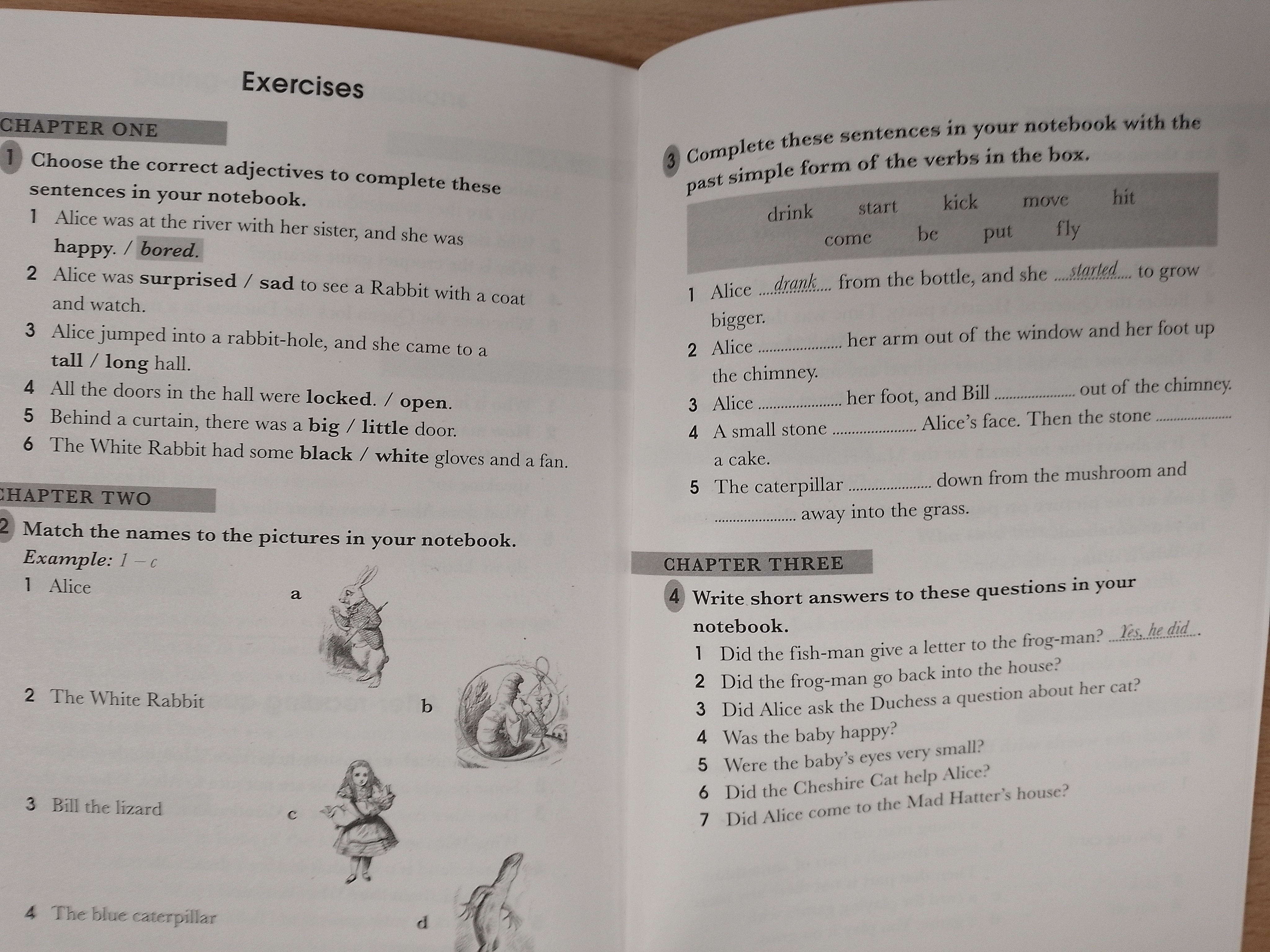 Alice in Wonderland, a Level 2 Reader, is A1+ in the CEFR framework. Sentences contain a maximum of two clauses, introducing the future tenses will and going to, present continuous for future meaning, and comparatives and superlatives. It is well supported by illustrations, which appear on most pages.