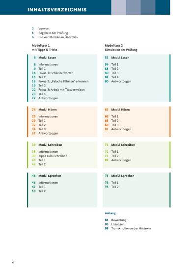 Das kompakte und übersichtliche Prüfungsvorbereitungsmaterial richtet sich an Lernende, die die Niveaustufe erreicht haben und sich schnell auf die Prüfung vorbereiten wollen, sowie an Lehrende, die sich einen schnellen Überblick über die Prüfung und deren Anforderungen verschaffen wollen bzw. auf ein ausführliches Prüfungstraining am Ende eines Sprachkurses verzichten können.