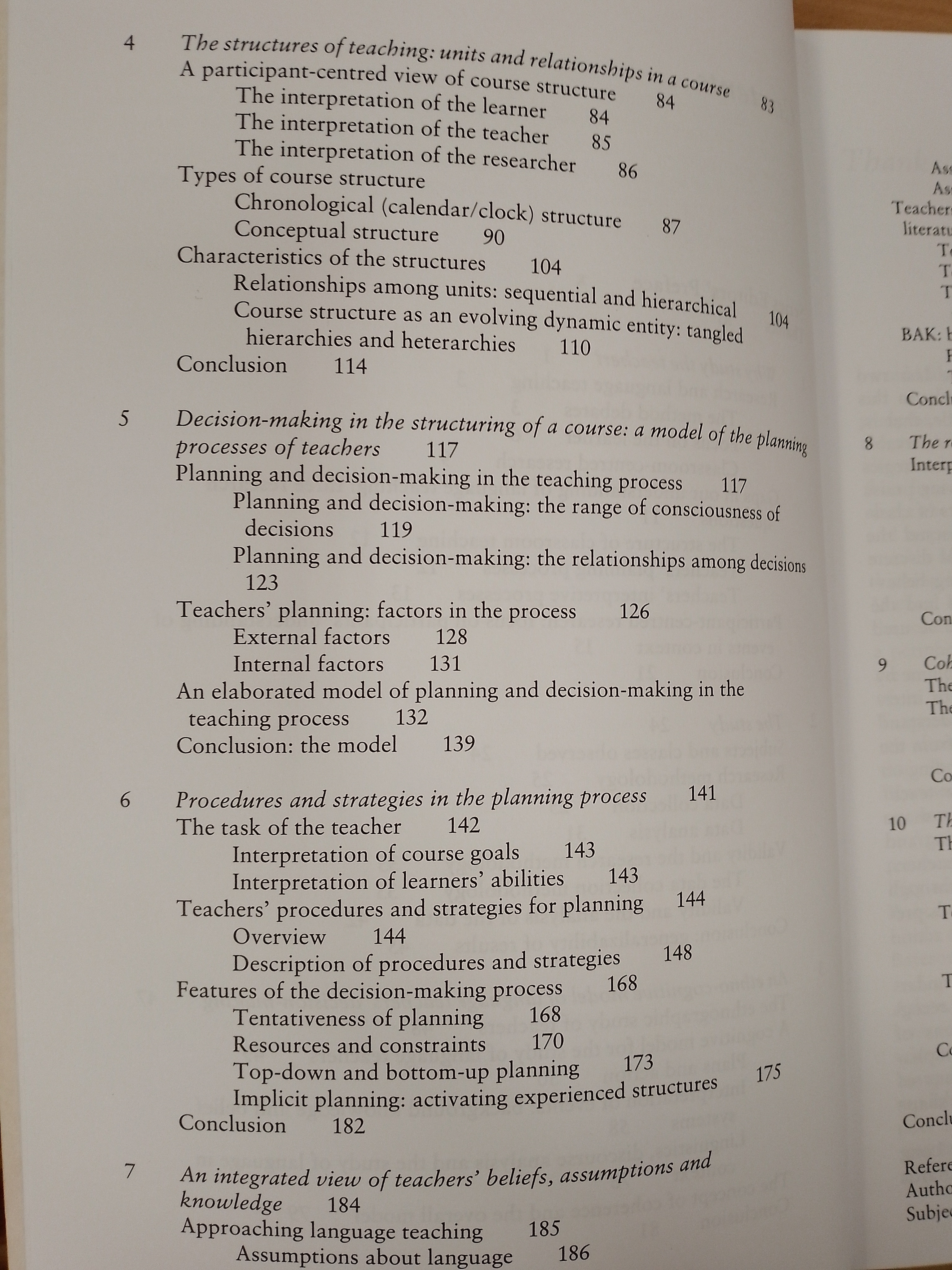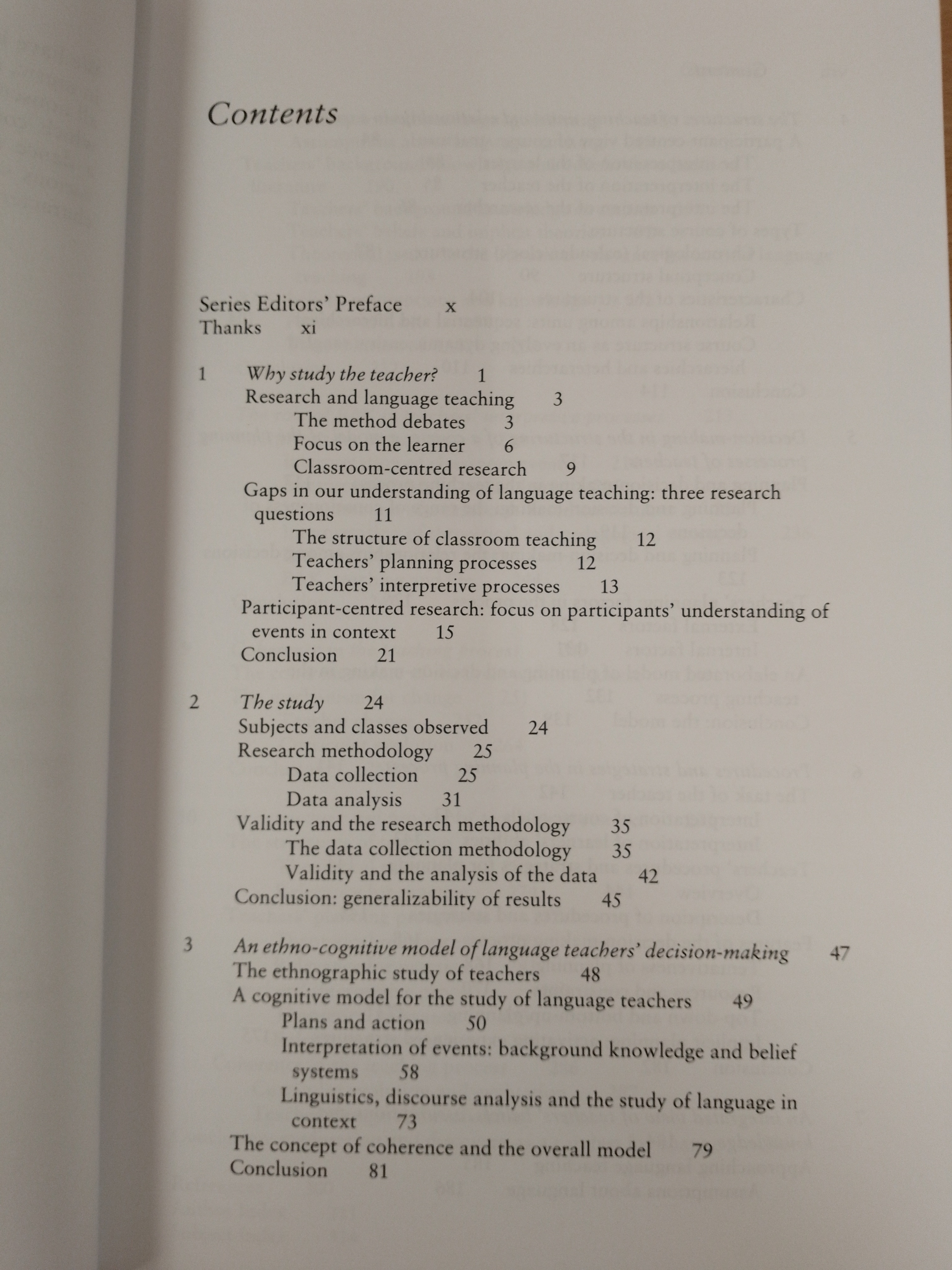 This book is an examination of how and what teachers think in their practice of language teaching. It looks at the planning practices of teachers, both in preparation for the classroom and during the moment-by-moment decision-making that occurs in the classroom. It also looks at teachers' interpretive processes, that is how they interpret and evaluate the events, activities and interactions that occur in the teaching process, and how these interpretations and evaluations feed back into subsequent planning. It examines the structure of teachers' beliefs, assumptions and background knowledge and elaborates the role that these play in the decision-making process. This is an important contribution to the developing perspective in education of teachers as being actively involved in constructing a personal and workable theory of teaching and the learning/teaching experience as an interactive, dynamic process.