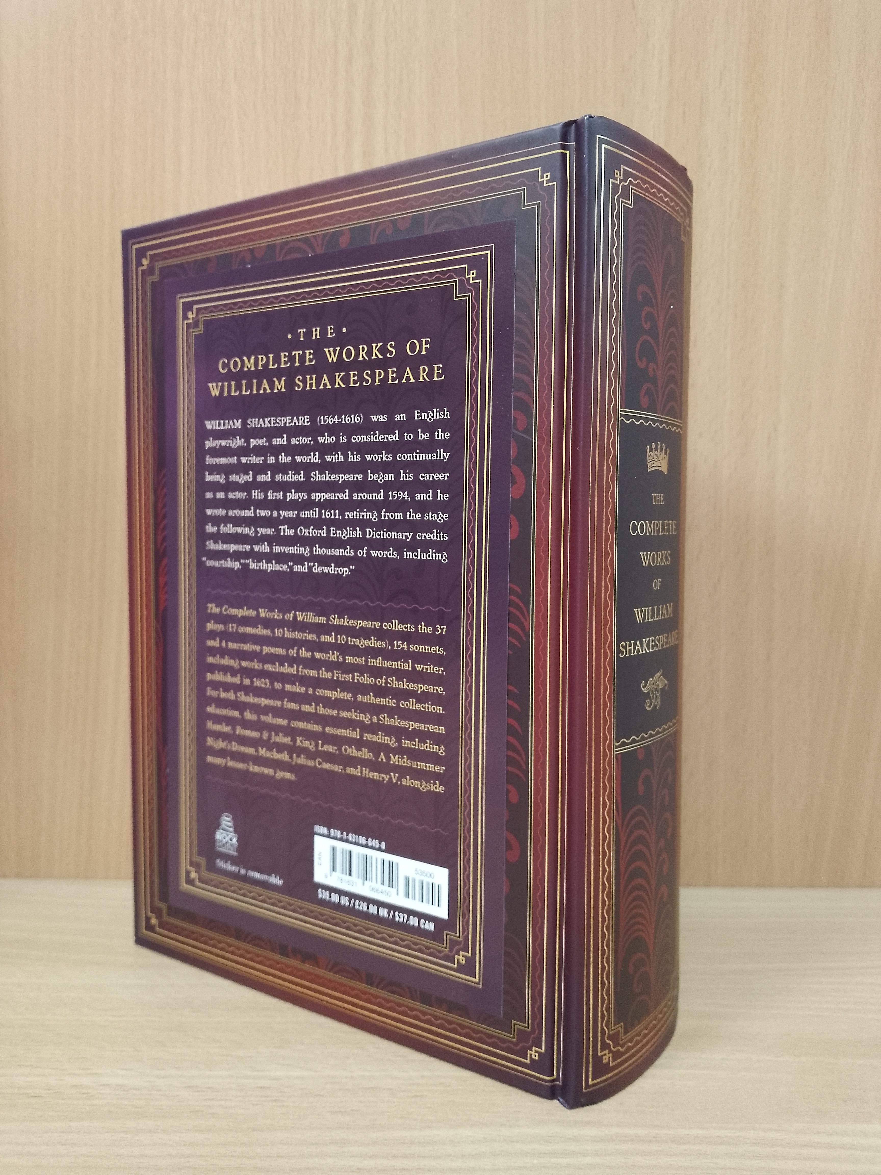 Arm yourself with this volume from the Knickerbocker Classics series, The Complete Works of William Shakespeare, including 17 comedies, 10 histories, 10 tragedies, and all the poems and sonnets of the world's most influential writer. This collection includes poems and plays that were not included in Shakespeare's First Folio of 1623 to make one complete, authentic collection. For Shakespeare and poetry fans worldwide, this stunning hardcover edition with its elegant cover is perfect for gift giving.