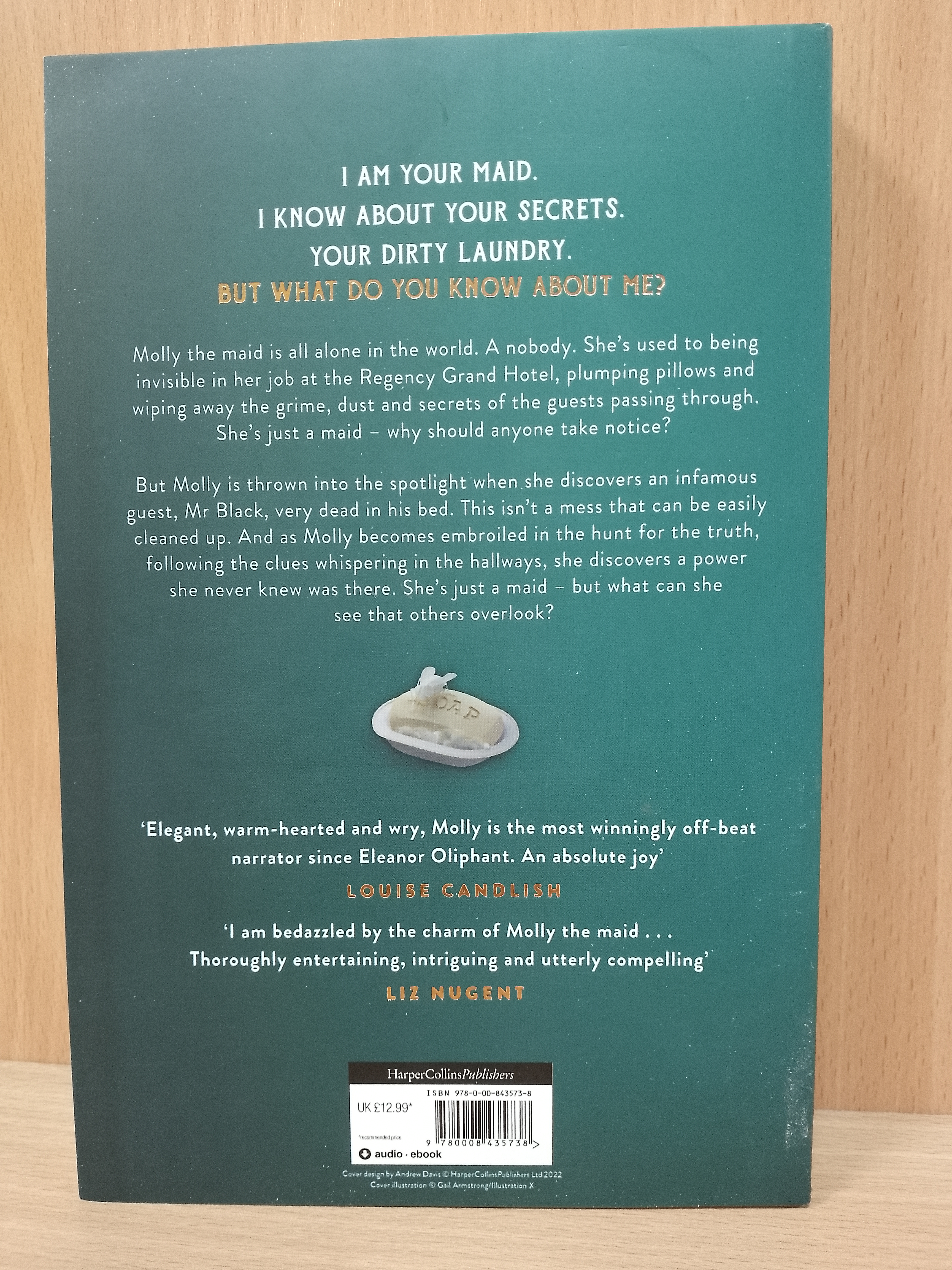 Molly the maid is all alone in the world. A nobody. She’s used to being invisible in her job at the Regency Grand Hotel, plumping pillows and wiping away the grime, dust and secrets of the guests passing through. She’s just a maid – why should anyone take notice? But Molly is thrown into the spotlight when she discovers an infamous guest, Mr Black, very dead in his bed. This isn’t a mess that can be easily cleaned up. And as Molly becomes embroiled in the hunt for the truth, following the clues whispering in the hallways of the Regency Grand, she discovers a power she never knew was there. She’s just a maid – but what can she see that others overlook? Escapist, charming and introducing a truly original heroine, The Maid is a story about how the truth isn’t always black and white – it’s found in the dirtier, grey areas in between . . .