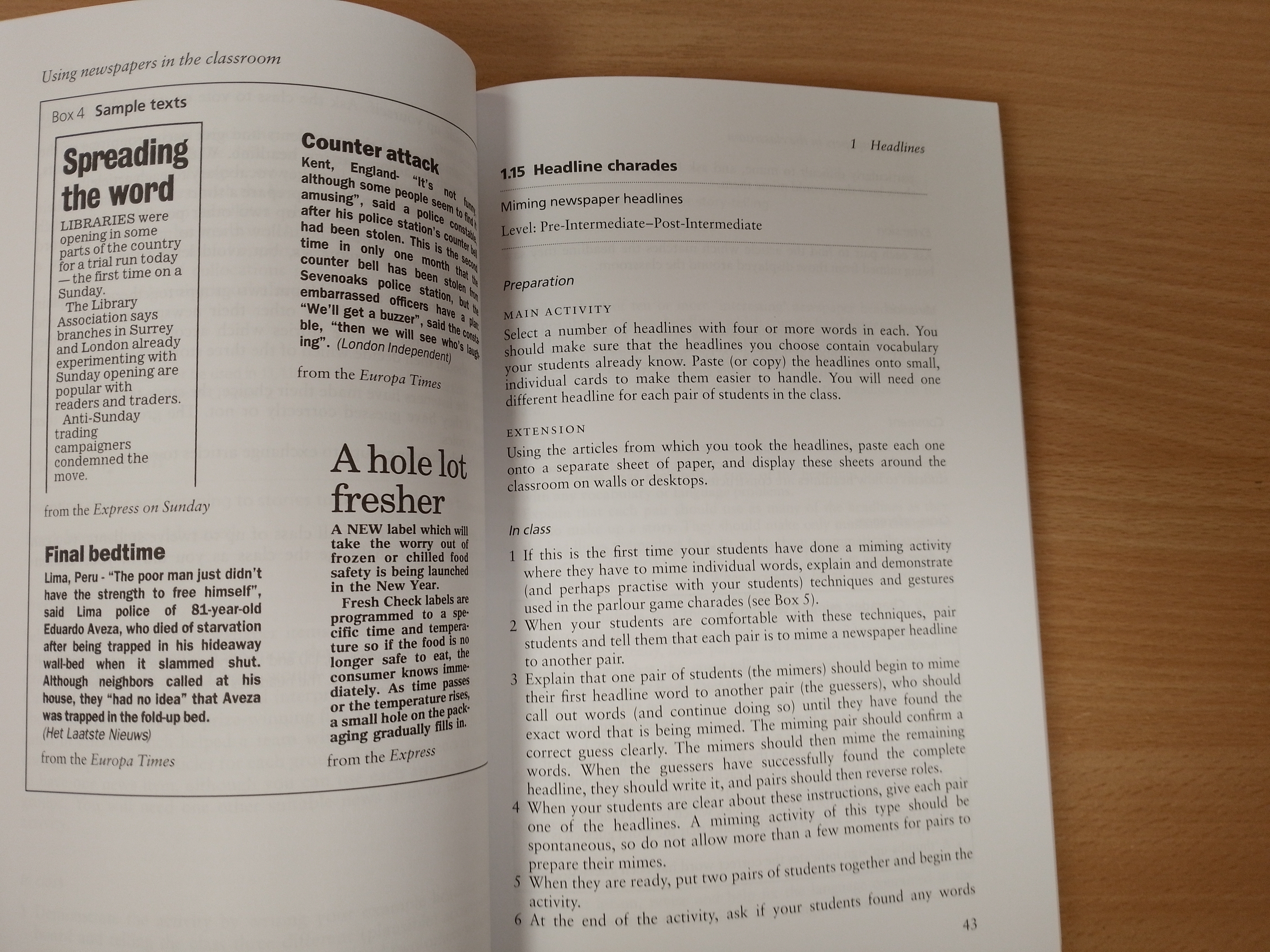 This book includes over 130 practical and creative activities, which show teachers how to exploit the different features and sections of newspapers. The activities are designed to provide motivating and challenging learning experiences, as well as valuable language practice. Clear lesson plans, sample materials and practical guidelines combine to give teachers of general English and English for specific purposes maximum support for using newspapers in the classroom.