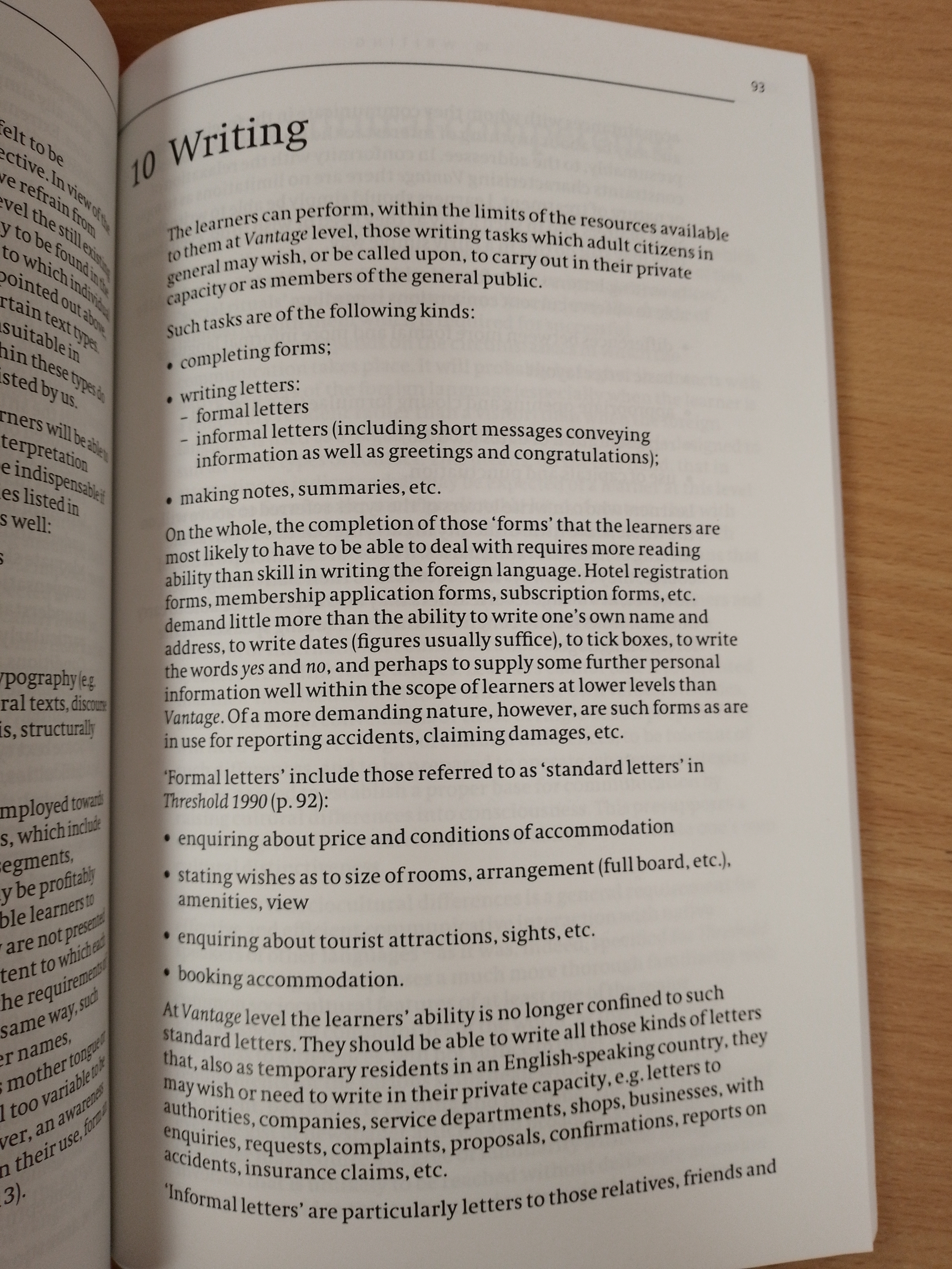 Vantage is a statement of language learning objectives which sets out how learners at upper-intermediate level should be able to use English in everyday communication. It specifies the most essential situations, topics, functions and notions and their lexical and grammatical exponents. Further specifications include sociocultural competence, learning to learn, pronunciation and intonation. This specification is of practical use to all those concerned with constructing language teaching syllabuses, course design, materials writing, language planning, and evaluation and assessment. Vantage is the third and highest level in the Waystage - Threshold - Vantage series. This series has been published by Cambridge University Press and developed in the framwork of the Modern Languages Programme of the Council of Europe.