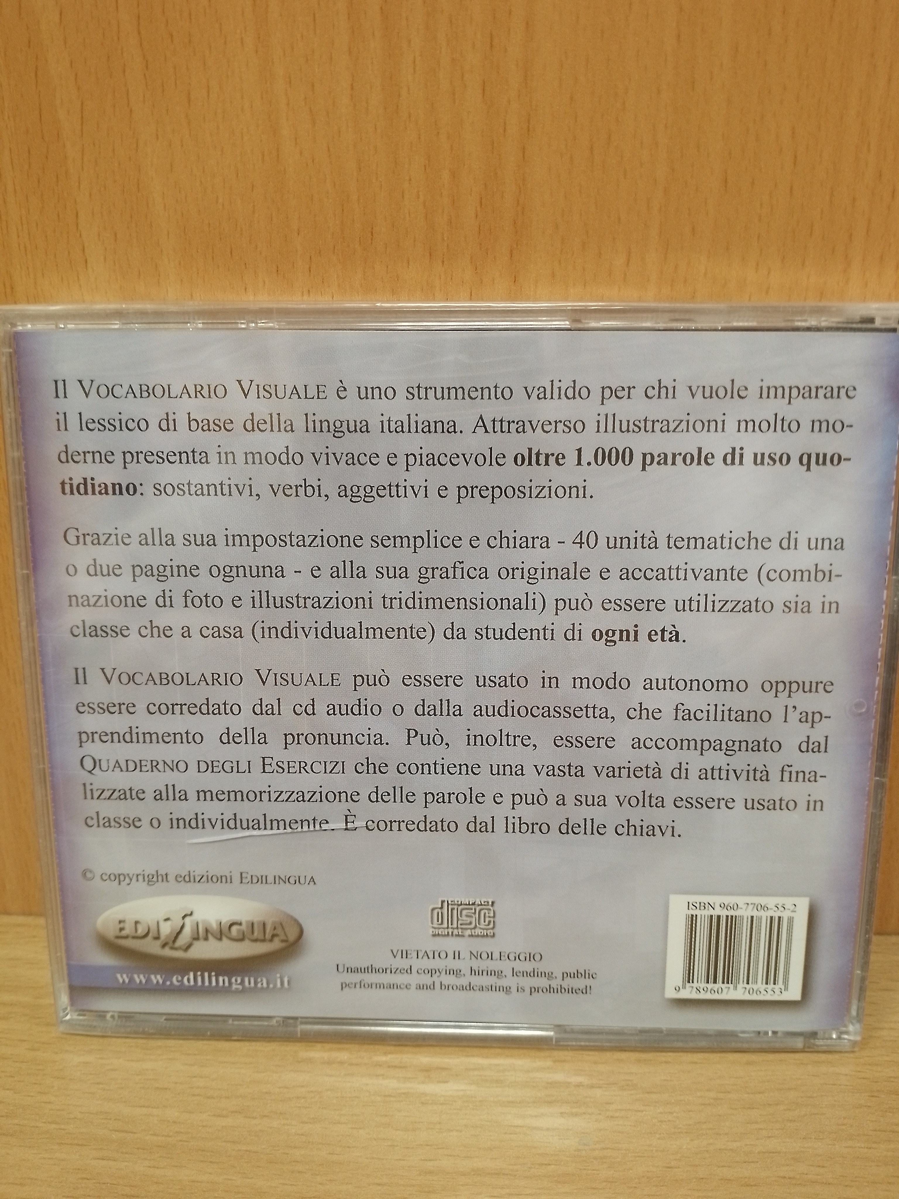 II VOCABOLARIO VISUALE può essere usato in modo autonomo oppure essere corredato dal ed audio o dalla audiocassetta, che facilitano l'ap-prendimento della pronuncia. Può, inoltre, essere accompagnato dal QUADERNO DEGLI ESERCIZI che contiene una vasta varietà di attività fina-lizzate alla memorizzazione delle parole e può a sua volta essere usato in classe o individualmente. È corredato dal libro delle chiavi.