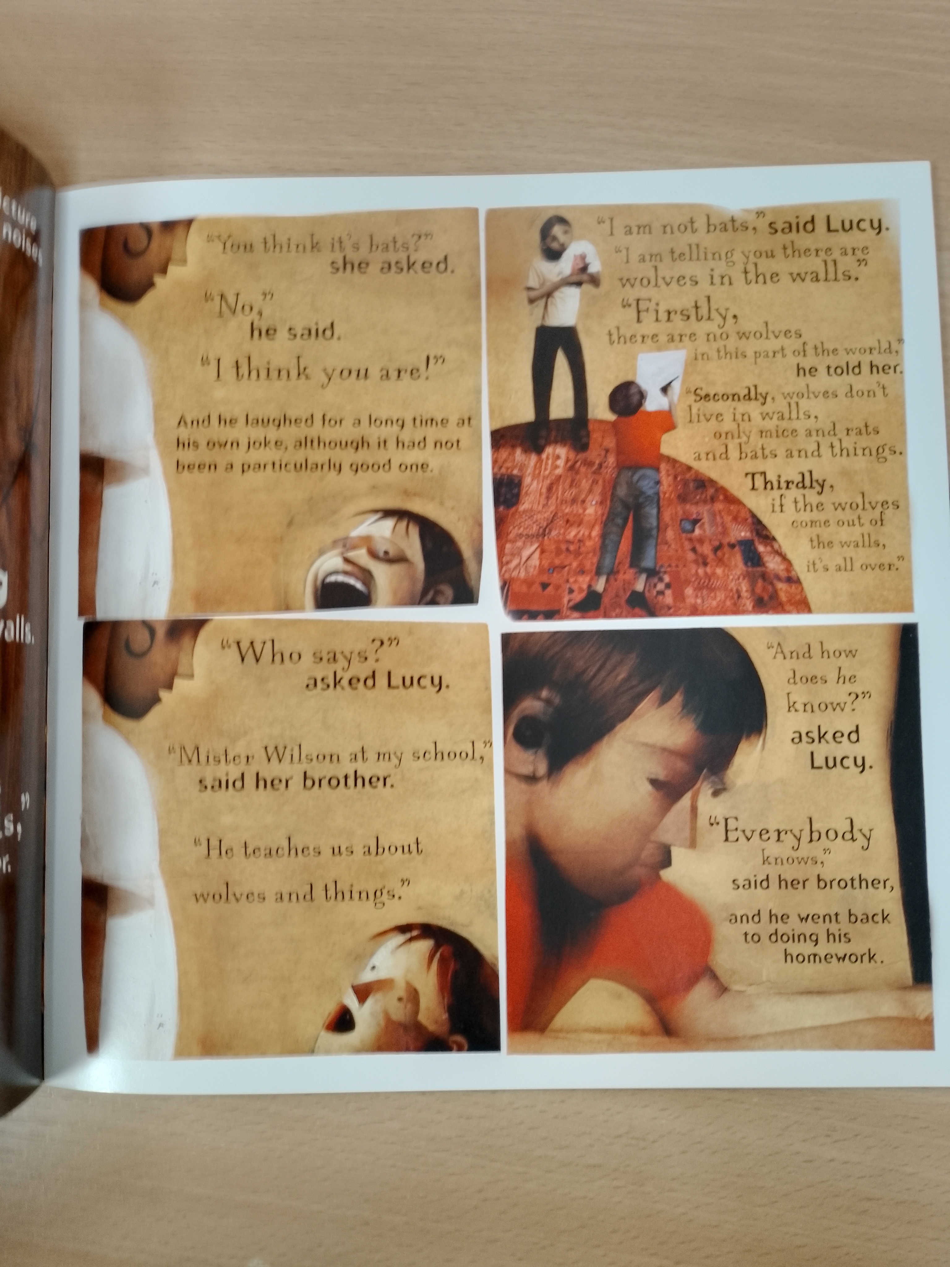 Lucy is sure there are wolves living in the walls of their house--and, as everybody says, if the wolves come out of the walls, it's all over. Her family doesn't believe her. Then one day, the wolves come out.